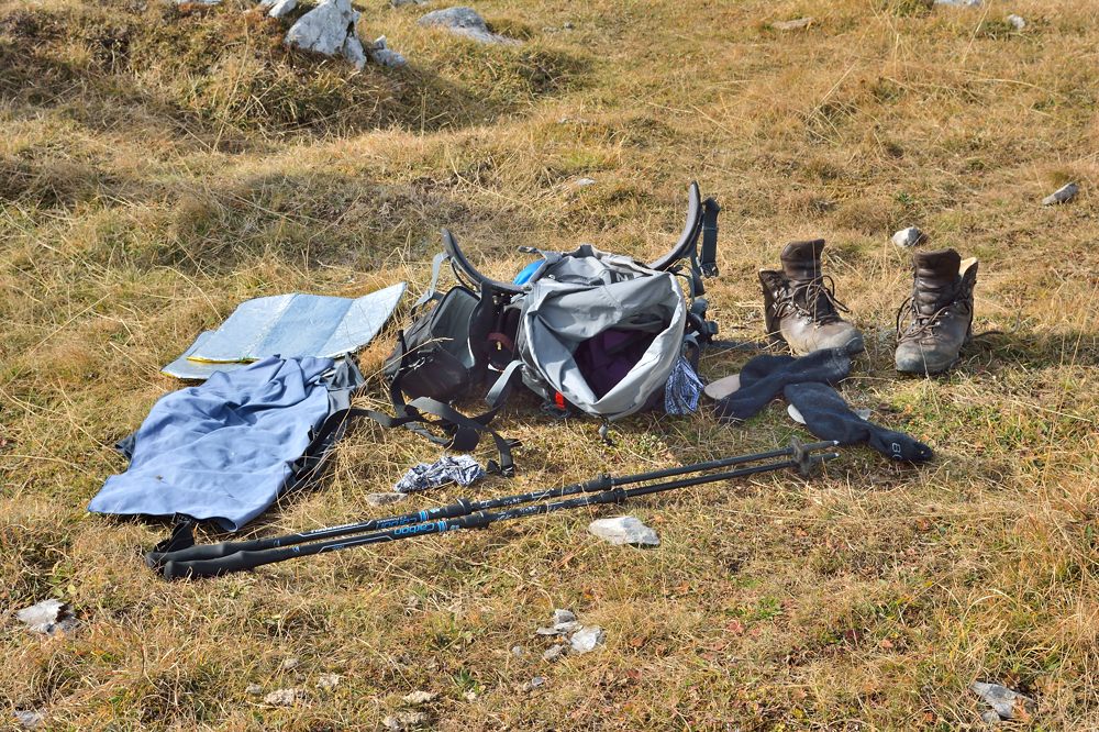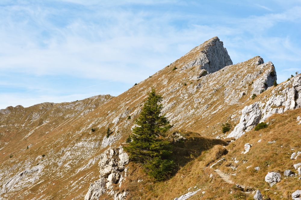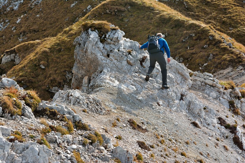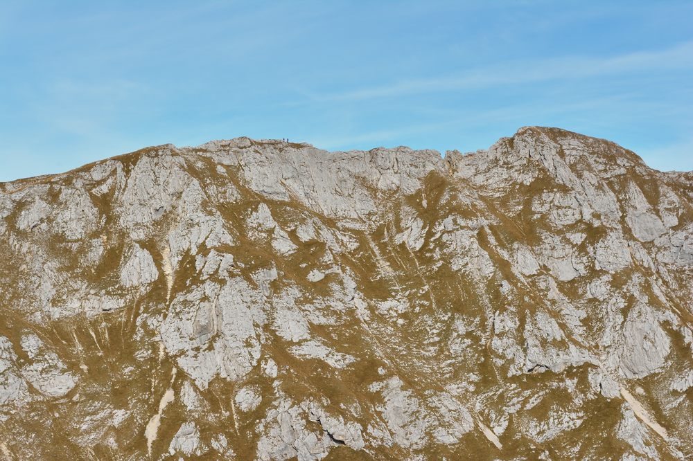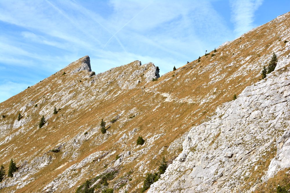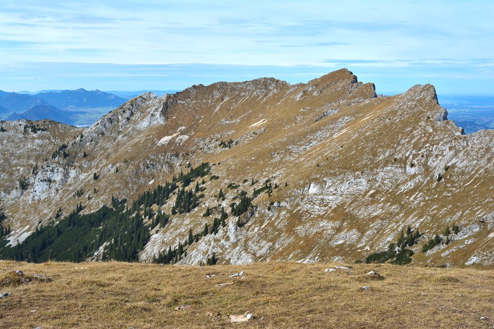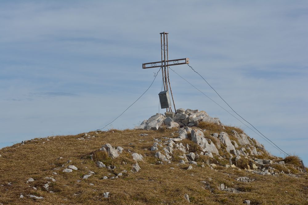 Wir nehmen den Schützensteg und folgen den Wegweisern zur Hochplatte. Im Roggentalsattel direkt nach Süden auf Steigspuren zuerst über schrofiges Gelände und dann Wiesen hinauf zum Gipfelplateau der Hochblasse (woher weiß ich eigentlich, dass hier Weiblichkeit angesagt ist).