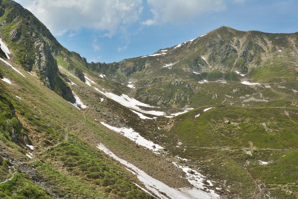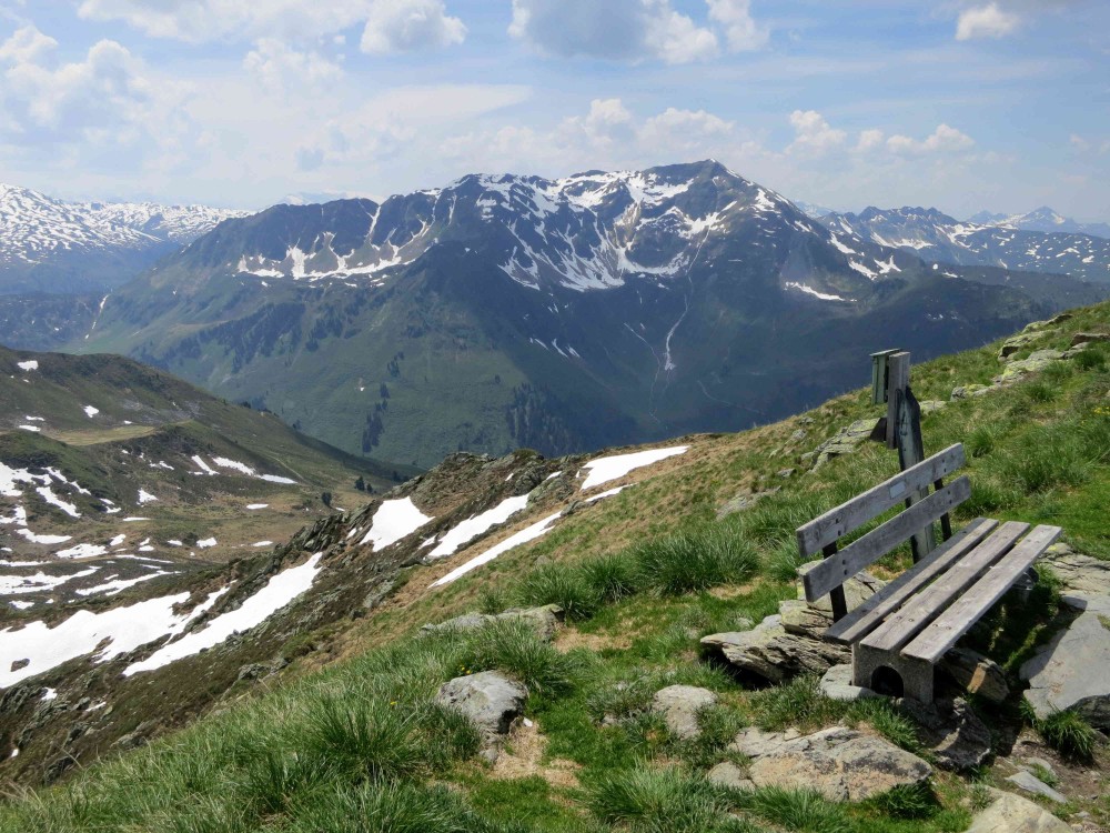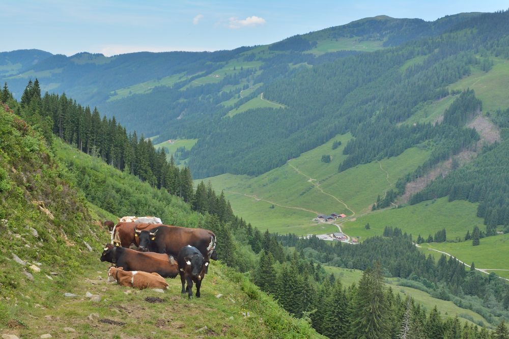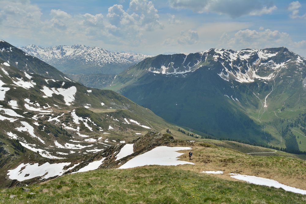 Beim Abstieg sind anfangs einige Schneefelder zu queren. Zur Seefeldalm steigt der Weg noch mal kurz an, dann hinunter zur Farnkaseralm. Und weiter hinunter ins Tal, eine Kuh-Blockade muss allerdings überwunden werden. Wir kommen genau beim Auto an.
