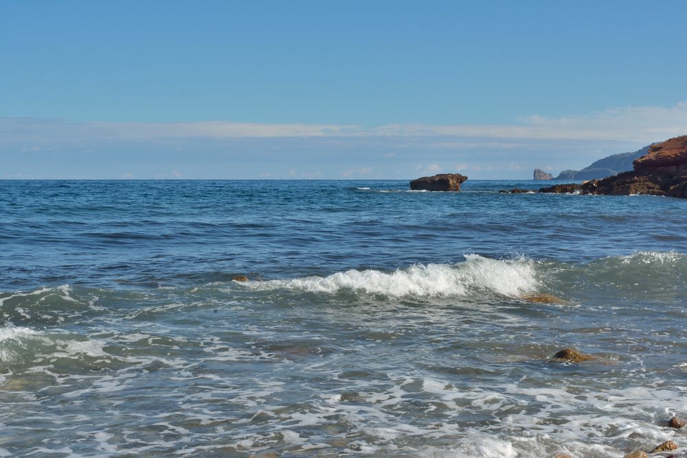 Gegen Mittag bekomme ich das Gefühl, es sei bereits Abend. Das täuscht, und daher gehen einige hinunter ans Meer zu einer eher tristen Bucht mit großen Steinen. Baden ist hier mehr Pflicht als Kür, das Wasser ist warm und salzig, schon lange nicht mehr im Meer gewesen.