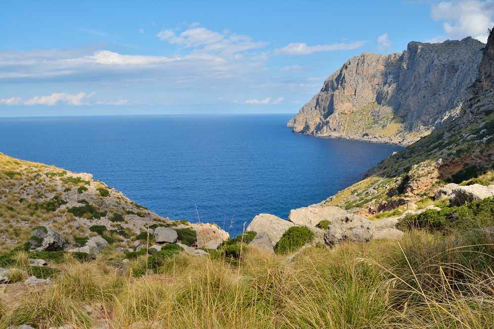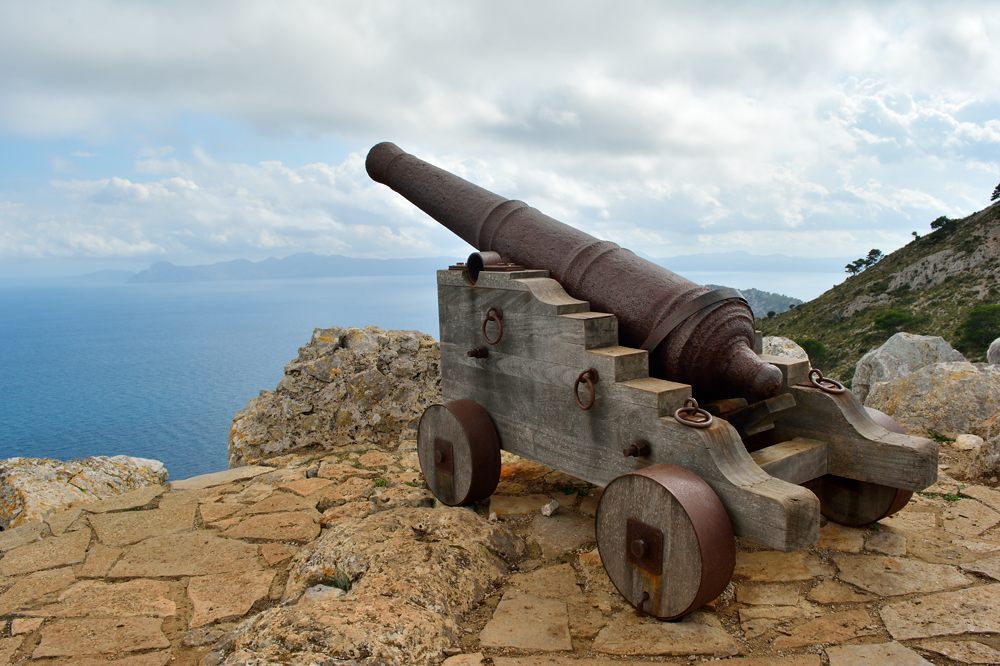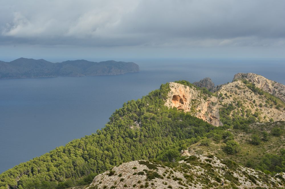 Der Nordosten Mallorcas wird erkundet. Wir fahren nach Alcudia und besteigen auf der Halbinsel den Talaia d’Alcudia 451m. Dabei haben wir freie Sicht nach links + rechts in die Buchten von Alcudia + Pollenca, und aufs Cap Formentor. Das nächste Ziel ist die alte Befestigungsanlage Penya des Migdia 354m, gekrönt mit einer Kanone, ein wunderschöner Aussichtspunkt. Ich könnte hier länger sitzen und das Meer betrachten…