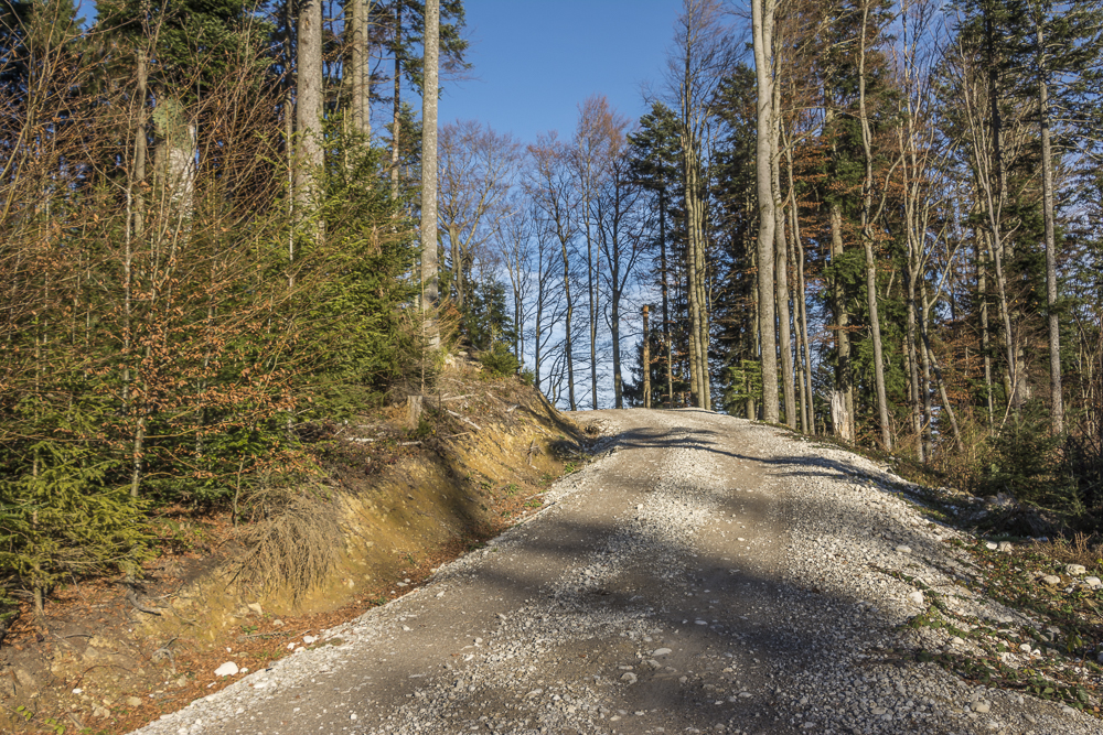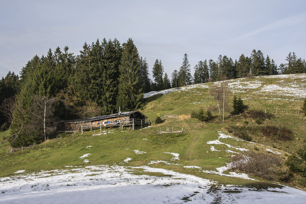 Deshalb gehe ich heute vom Breitenbachtalparkplatz in Bad Wiessee hinauf zur Wiese der Holzer Alm, einem idyllisches Plätzchen. Die neue Forststraße beim Aufstieg ist ein echtes Ärgernis, wird jedoch ignoriert.