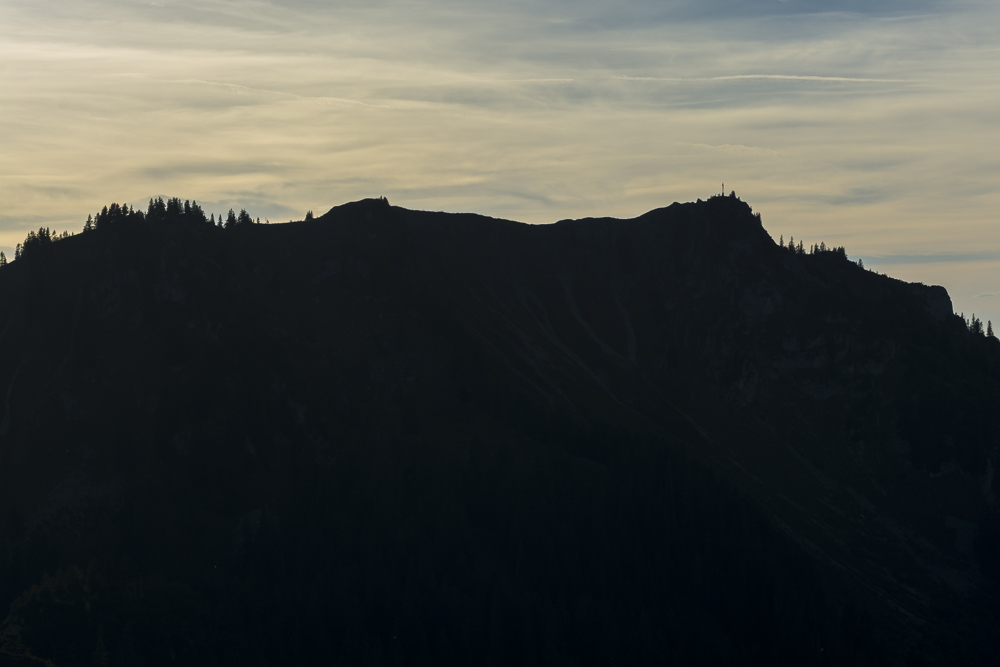 Der Ostgrat der Brecherspitze wird von mir gerne gemacht und eignet sich für vieles, z.B. als Kurztour mit felsigem Touch. Der Spitzingsattel ist überfüllt, und so parke ich beim Kurvenlift und gehe die Straße wieder zurück zum Sattel. Neben der Schranke beginnt der Steig, der steil hinaufzieht zum Gipfel. Etwas Felskontakt und nette Tiefblicke.