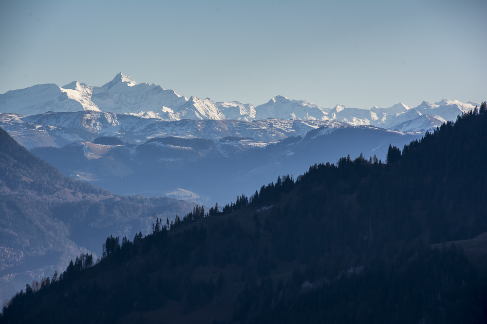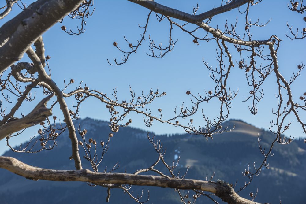 Vom Parkplatz an der Arzbachbrücke gehe ich über die von Kühen zertrampelte Wiese hoch zum „Gipfel“ des Schreckenkopf.