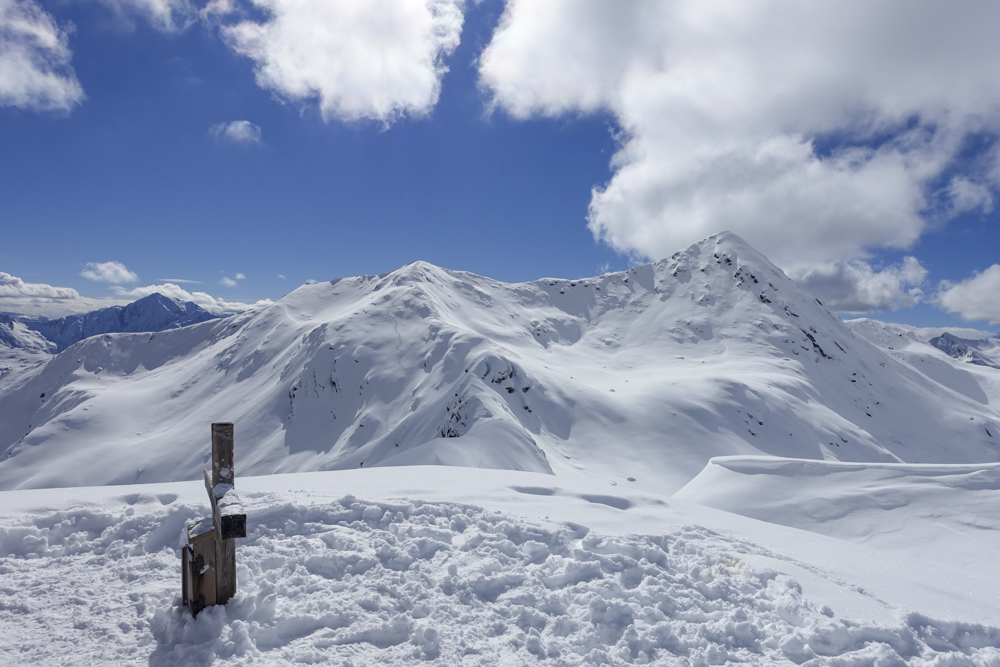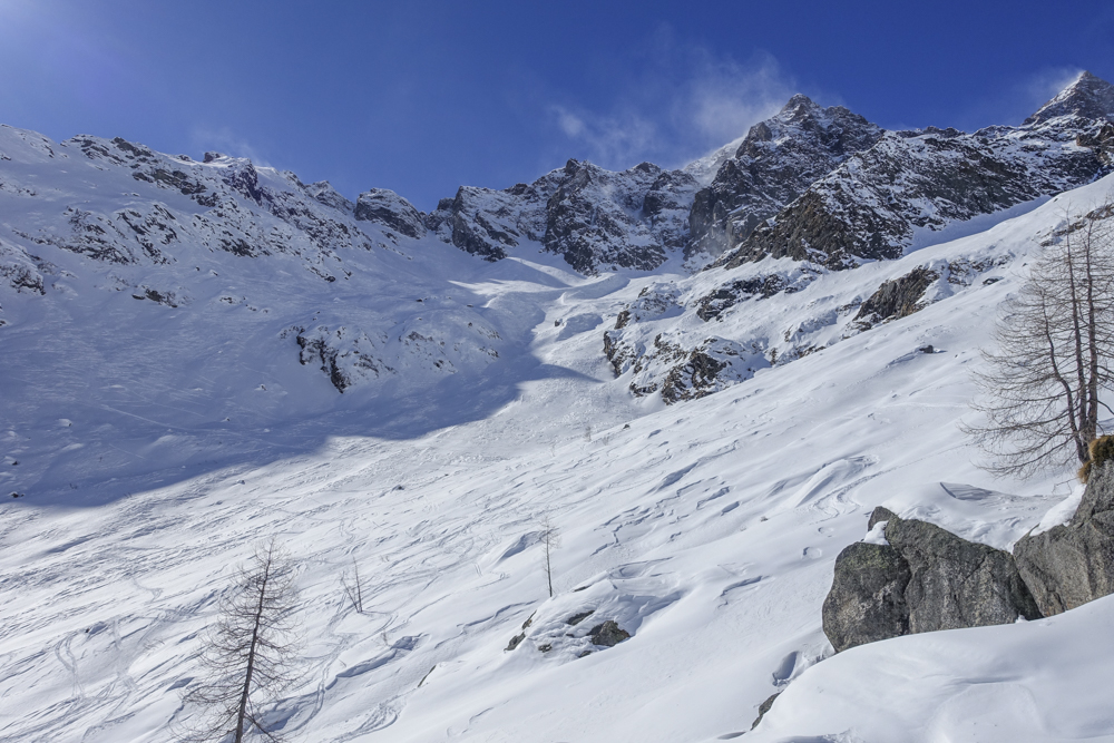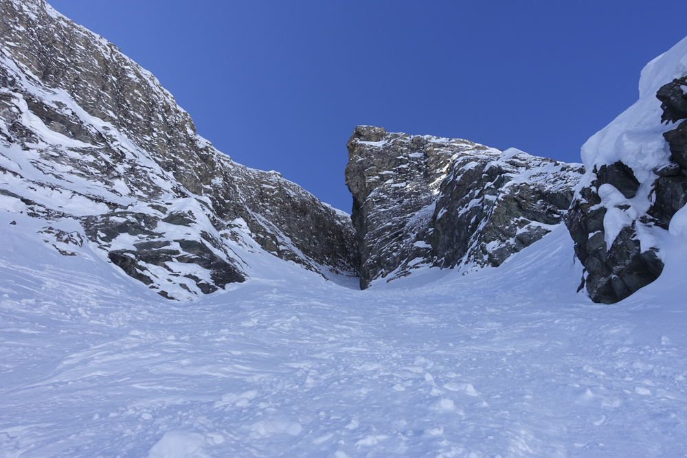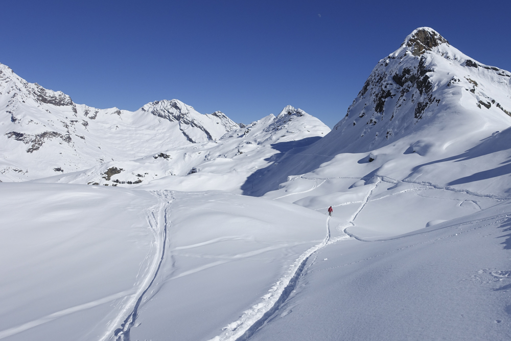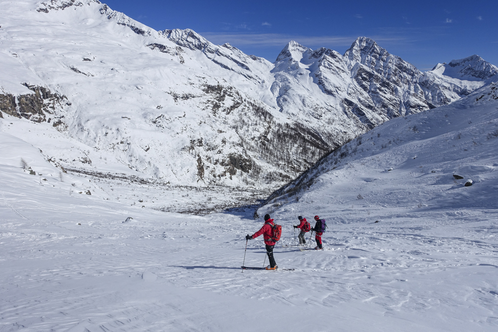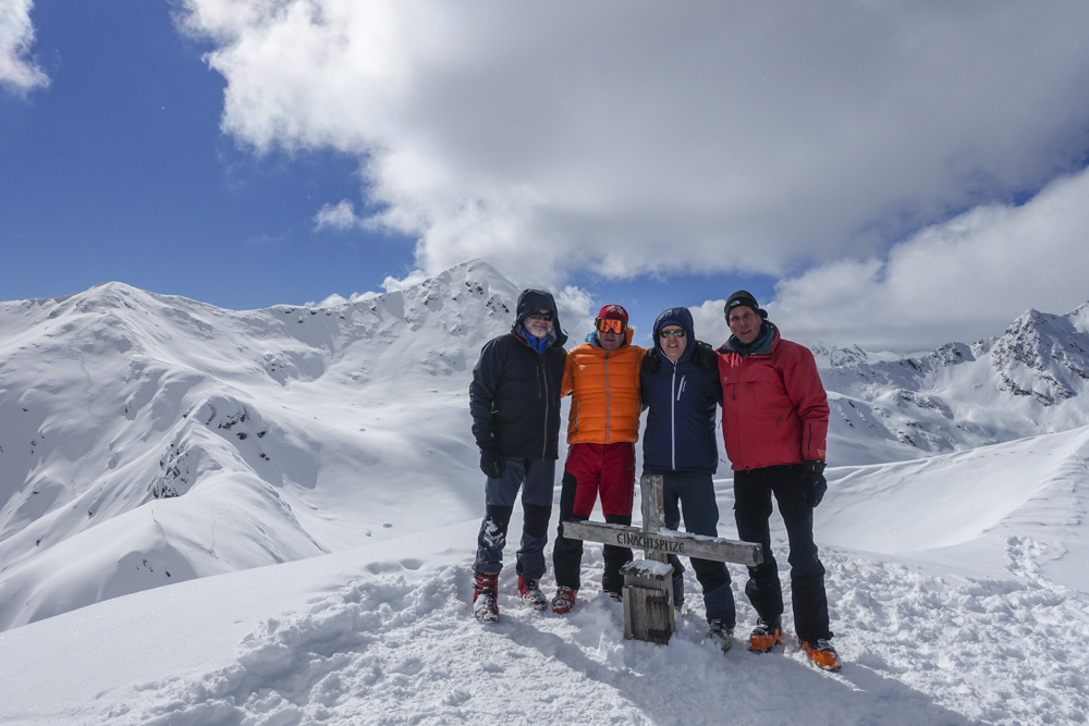 Hinauf zur Bocchetta delle Pisse, und wieder schöner Pulver bei der Abfahrt. Schließlich erreichen wir die schon bekannte mühsame Abfahrt ins Tal.