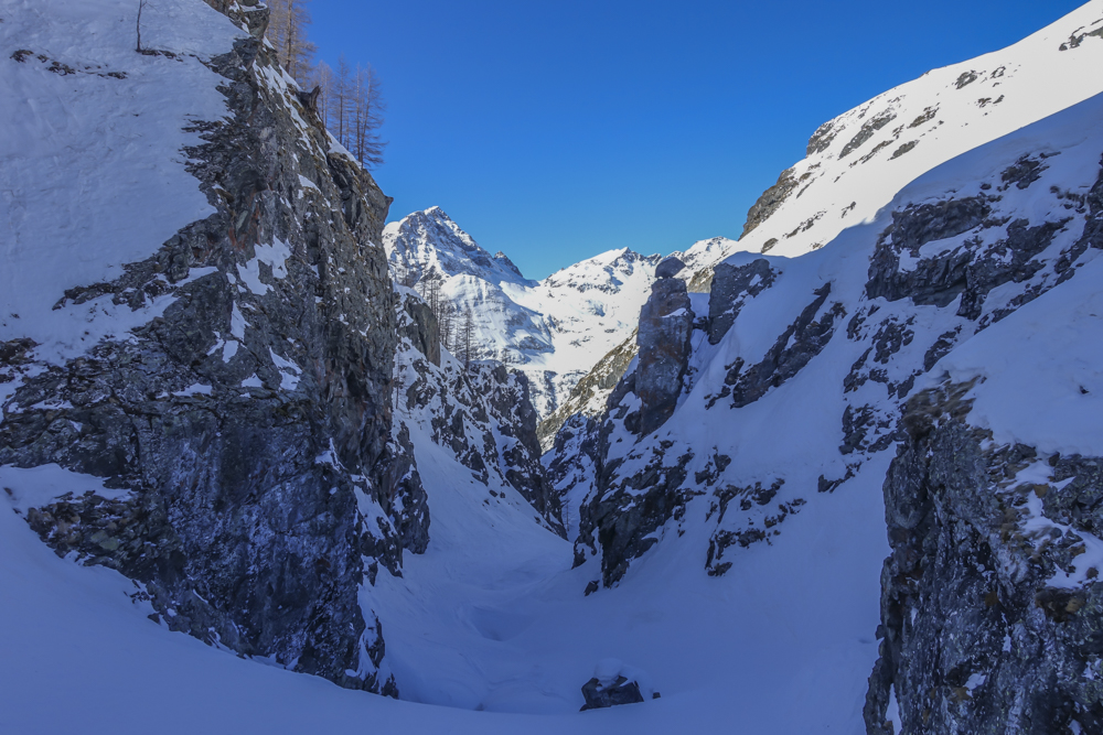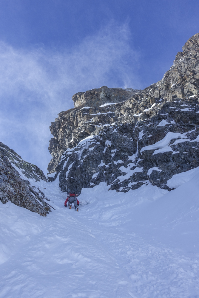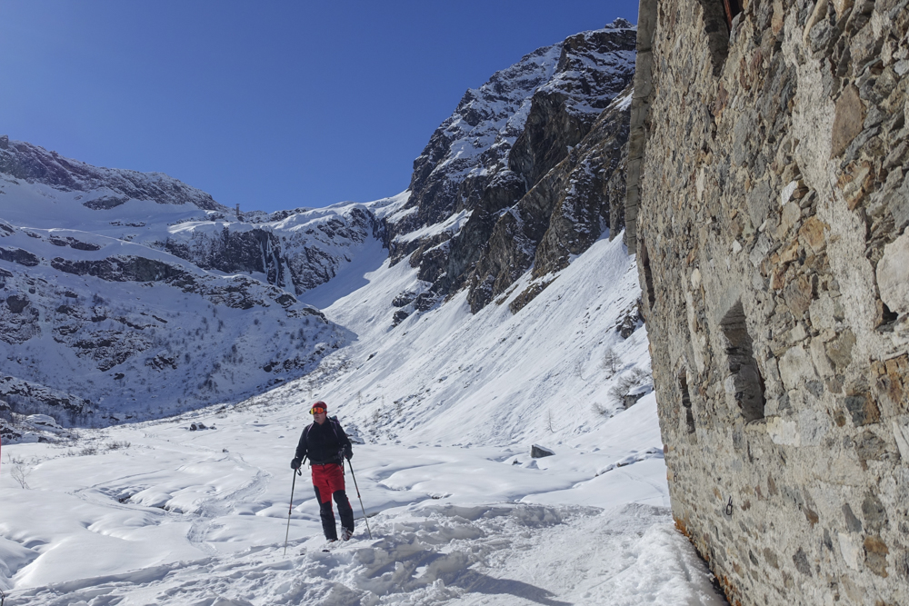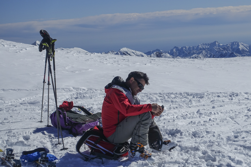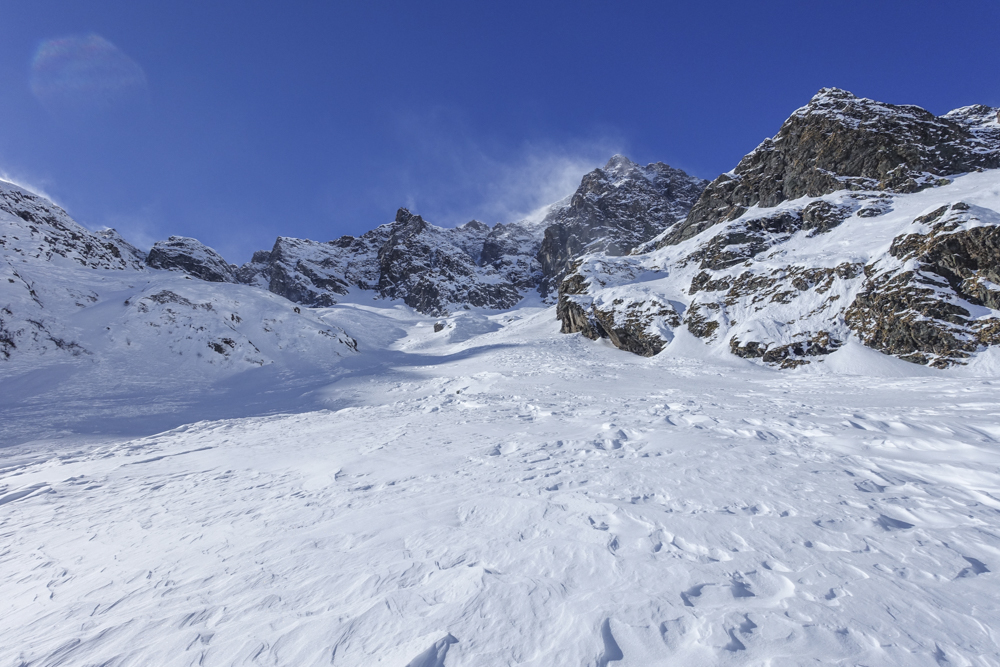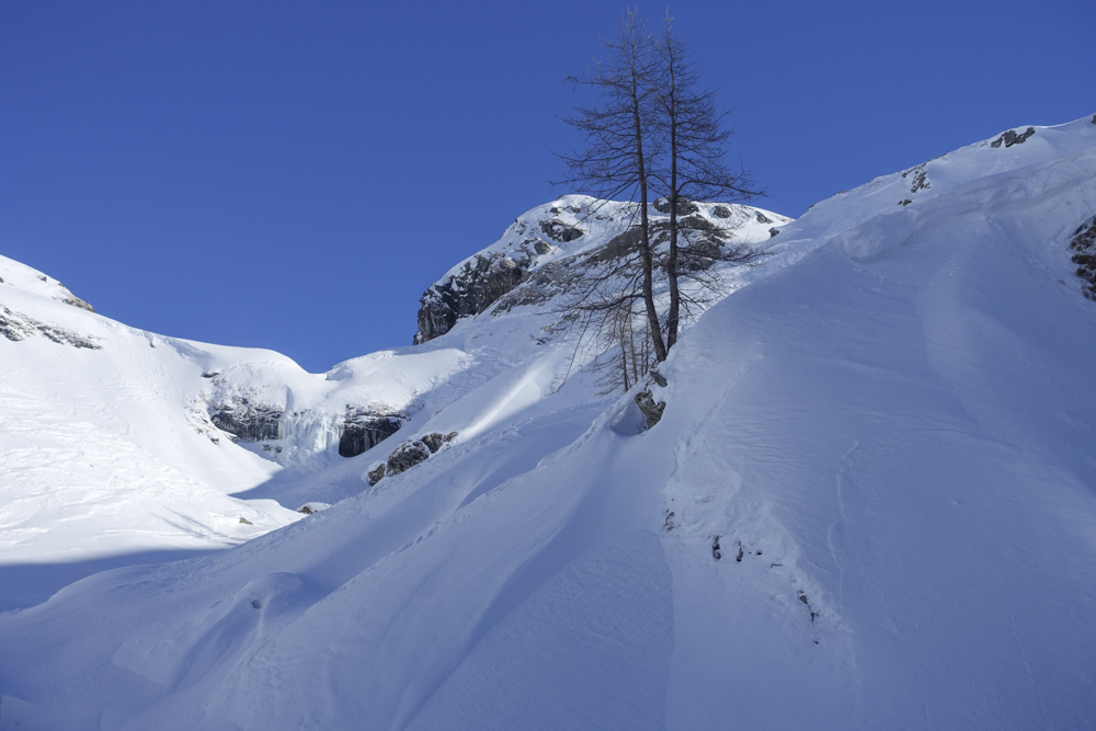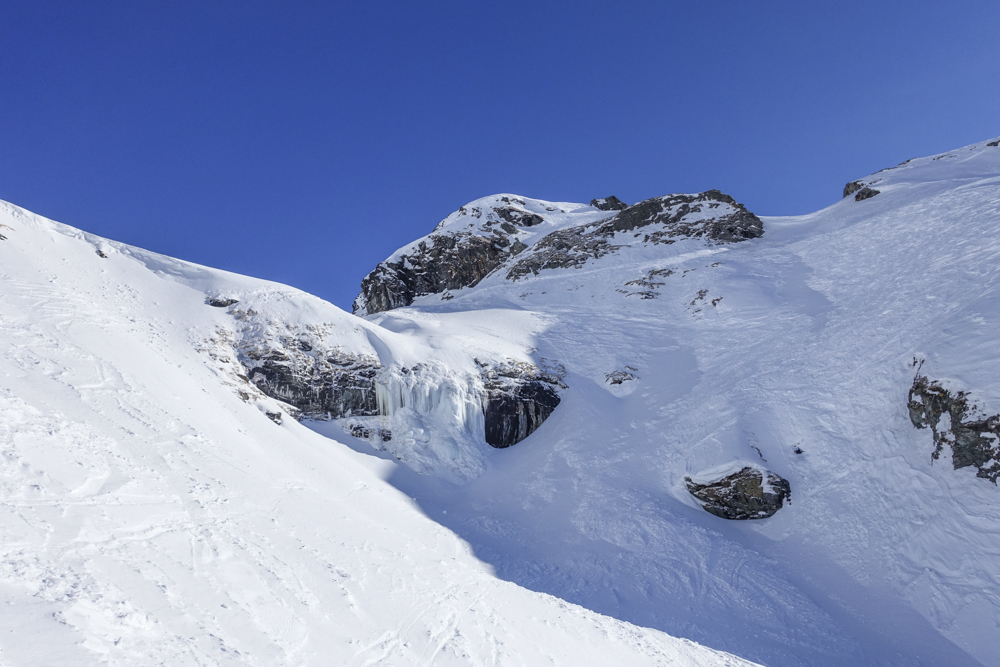 Hinauf zur Bocchetta delle Pisse, und wieder schöner Pulver bei der Abfahrt. Schließlich erreichen wir die schon bekannte mühsame Abfahrt ins Tal.