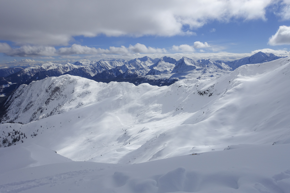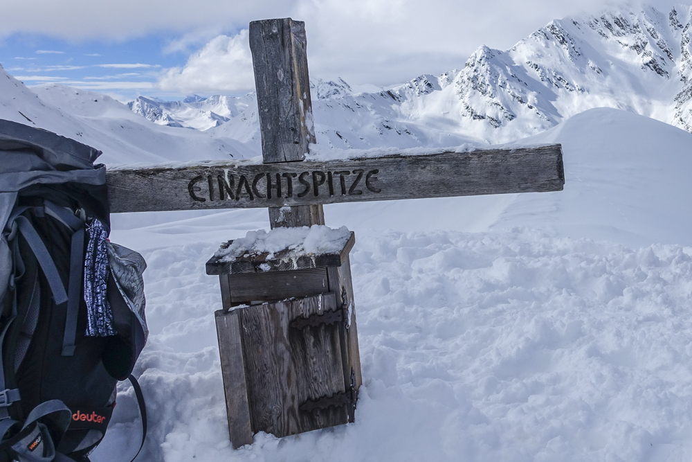 Die Einachtspitze wird von Entholz im Ridnauntal erstiegen. Sie wehrt sich mit einem steilen Wald, aber dann erwarten uns wunderschöne Skihänge.