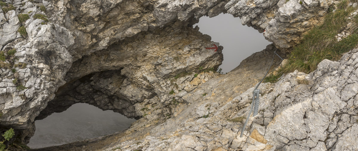 Abstieg zum Fensterl (sind ja zwei Löcher im Fels) und weiter durchs Köllebachtal zur Jägerhütte und dem vertrauten Schützensteig. Mit Peter.