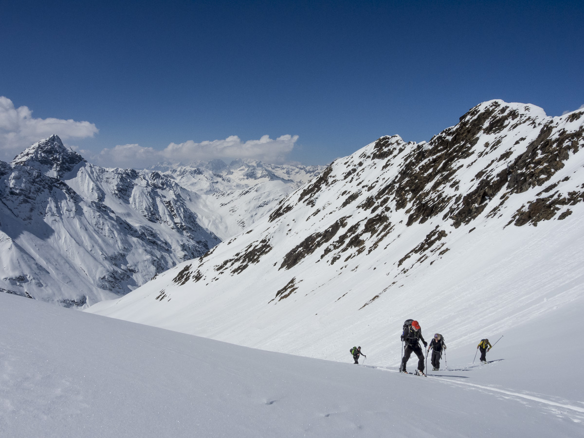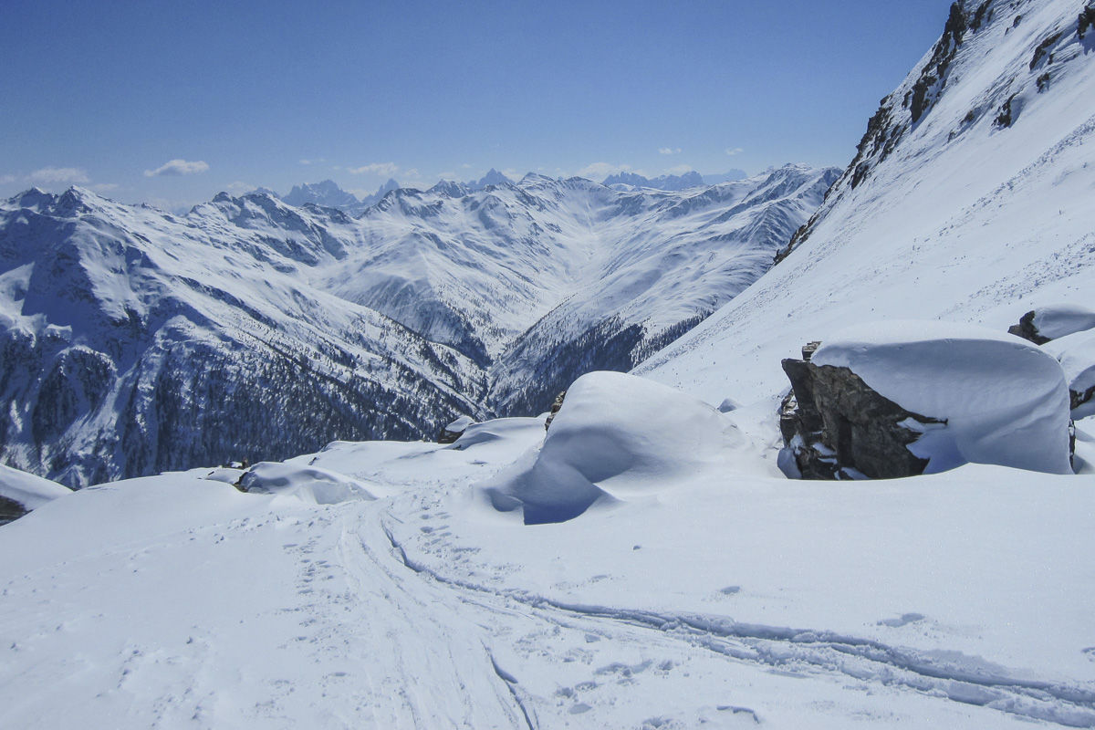 Das Defereggental erstreckt sich in West-Ost-Richtung, im Westen begrenzt durch den Staller Sattel, und im Osten zeigt sich die Schober-Gruppe. Bei der Einfahrt ins Tal stellt sich die Frage, ob hier überhaupt Skitouren möglich sind, so abweisend schauen die Berge aus.