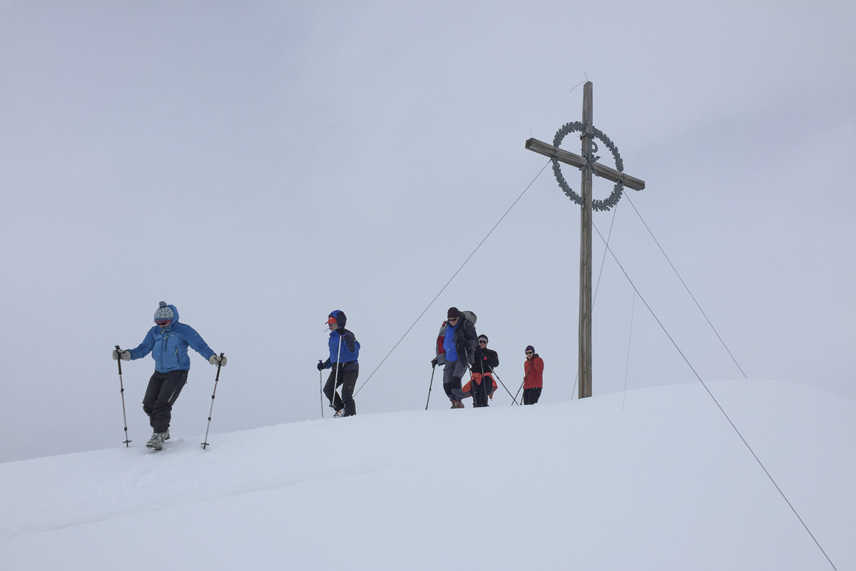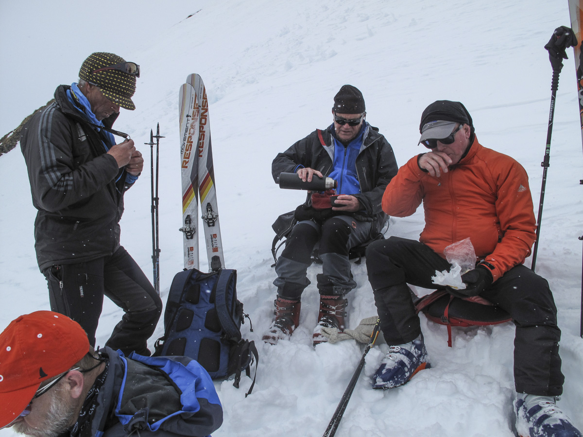 Der Speikboden erhebt sich direkt nördlich über St. Veit. Nach einer kurzen Autofahrt geht es auf der flachen Straße länglich hinauf zur Speikbodenhütte. Zwei Kreuze sind bereits sichtbar. Am Gedenkkreuz vorbei bis 100Hm unterm Gipfelkreuz, ab hier zu Fuß auf den Gipfel. Beim Abstieg im steilen Schnee trete ich in einem Hohlraum, ein Skischuh verfängt sich in einem Felsspalt, und ich stürze nach vorne. Das Innenband des linken Knies reißt ab. Das war’s, denke ich. Mein Dank an Wilfried und Karl für die physische und psychische Rettung.