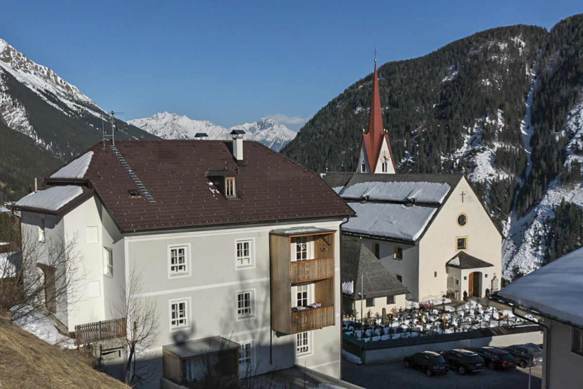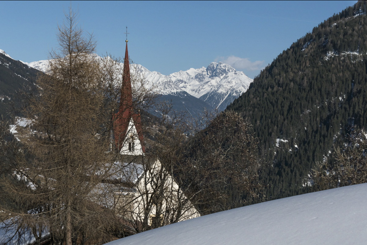 Hoch auf der sonnigen Nordseite des Tals liegt St. Veit. Die Unterkunft allerdings ist so verwinkelt gebaut, dass nur wenig Sonne die Zimmer erreicht, schade.