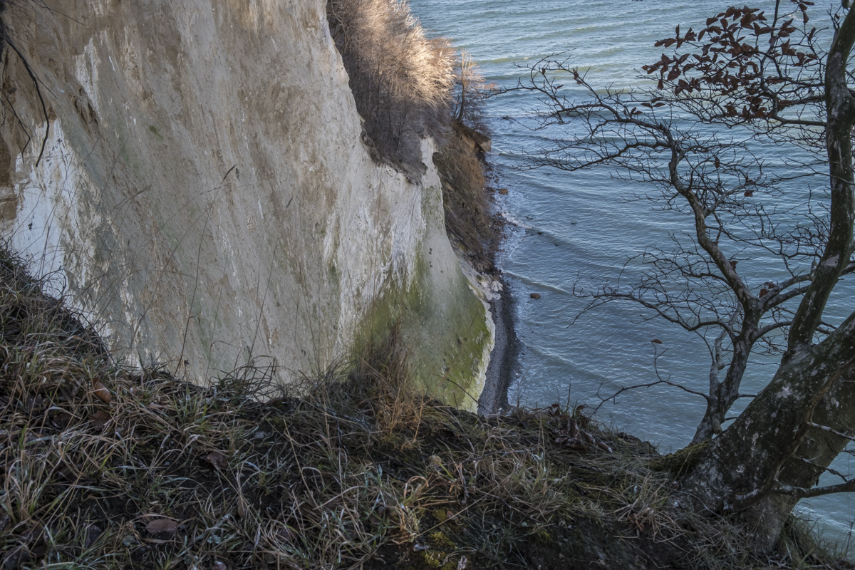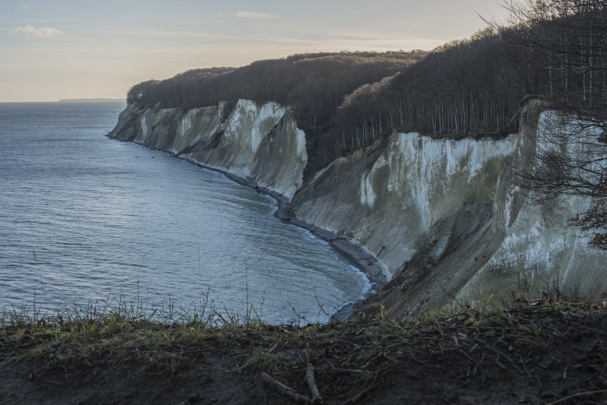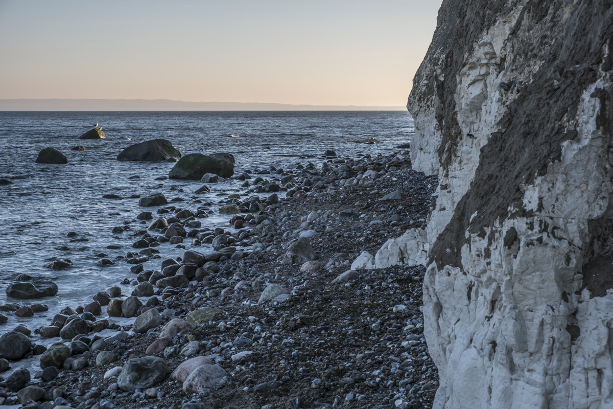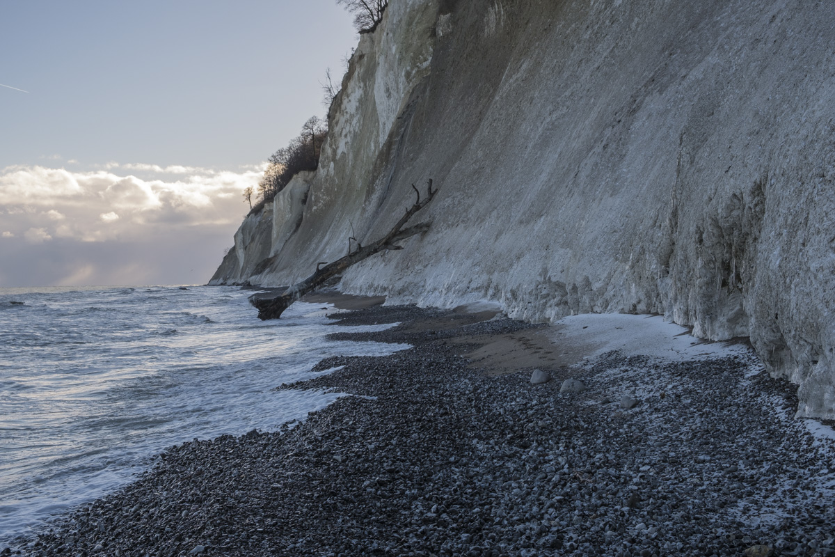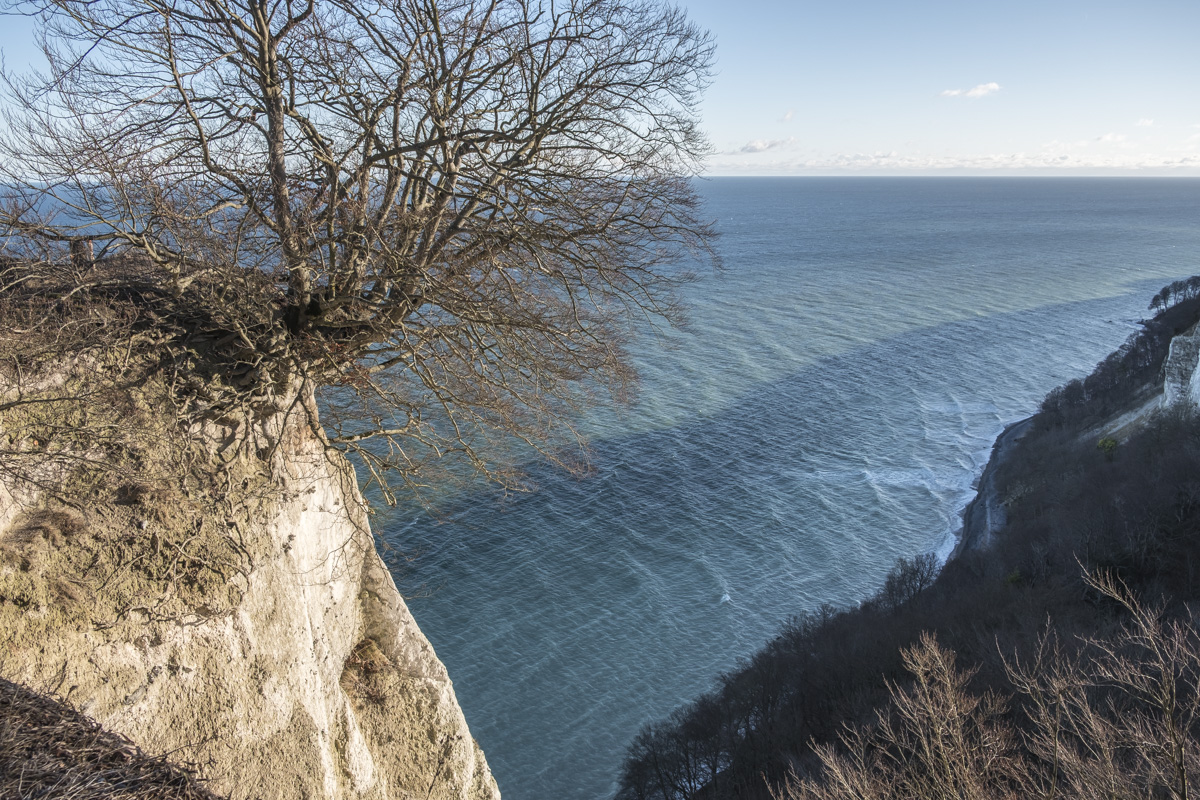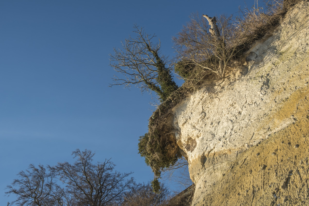 Die Kreideküste im Nordosten von Rügen muss noch einmal inspiziert werden. Vor allem am Vormittag wegen der Lichtverhältnisse. Von Sassnitz aus folgen wir dem Hochuferweg nach Norden. Die Wissower Klinken sind vor einigen Jahren abgebrochen, ein trauriger Anblick. Das macht aber nichts, der Rest ist spektakulär genug. Der Abstieg am Kieler Ufer endet mit einer steilen Treppe, zu steil für die Läufe. Wir gehen oben wieder zurück, und so bald wie möglich hinunter und nach Sassnitz. Natürlich werden Feuersteine gesammelt.