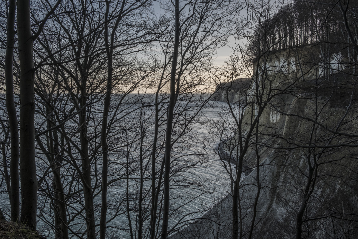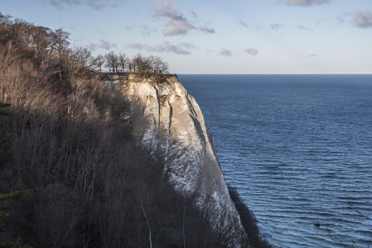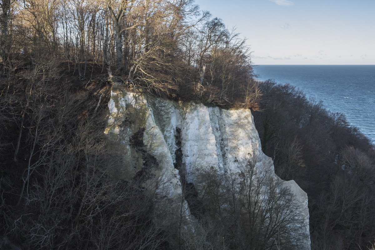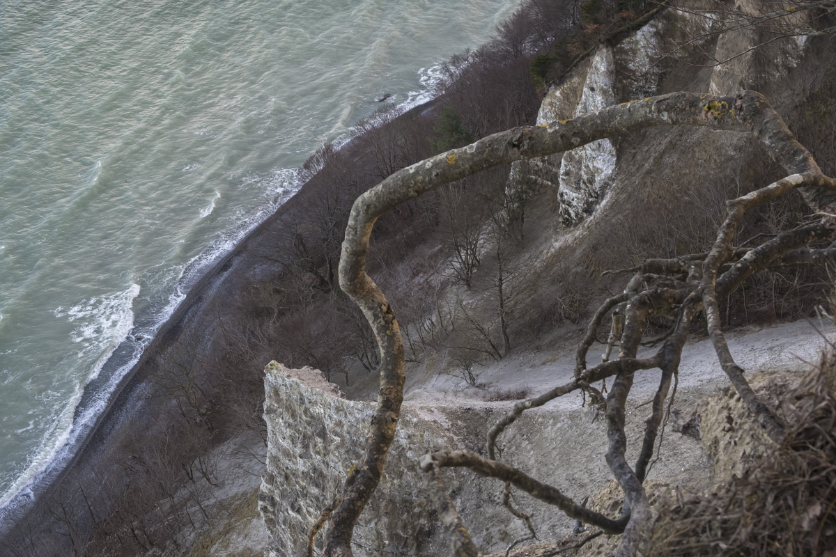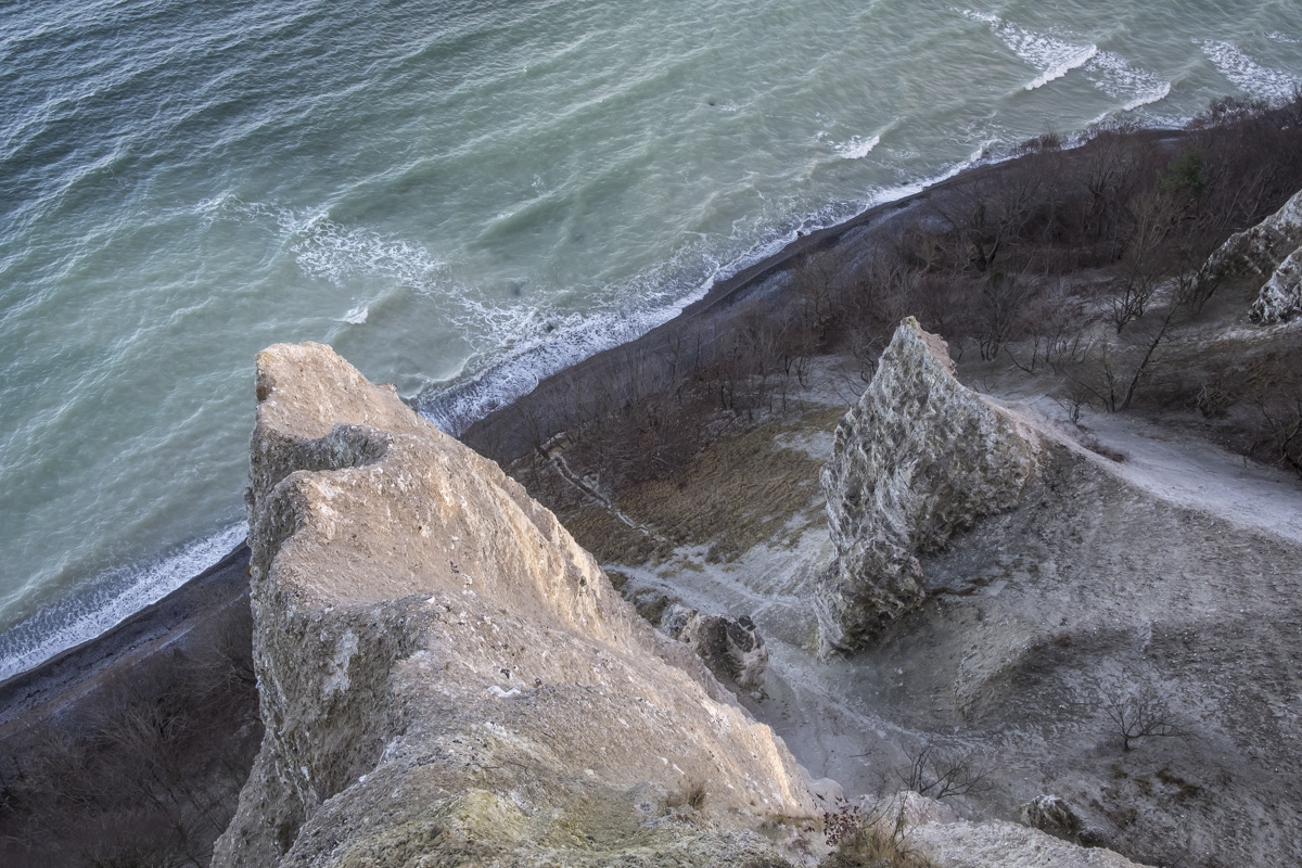 Die Kreideküste im Nordosten von Rügen muss noch einmal inspiziert werden. Vor allem am Vormittag wegen der Lichtverhältnisse. Von Sassnitz aus folgen wir dem Hochuferweg nach Norden. Die Wissower Klinken sind vor einigen Jahren abgebrochen, ein trauriger Anblick. Das macht aber nichts, der Rest ist spektakulär genug. Der Abstieg am Kieler Ufer endet mit einer steilen Treppe, zu steil für die Läufe. Wir gehen oben wieder zurück, und so bald wie möglich hinunter und nach Sassnitz. Natürlich werden Feuersteine gesammelt.