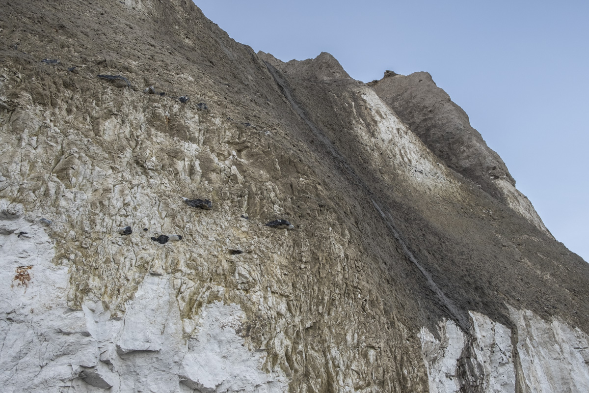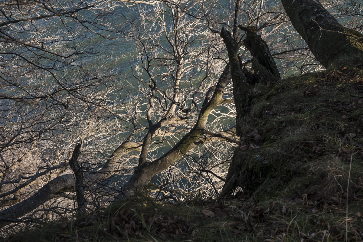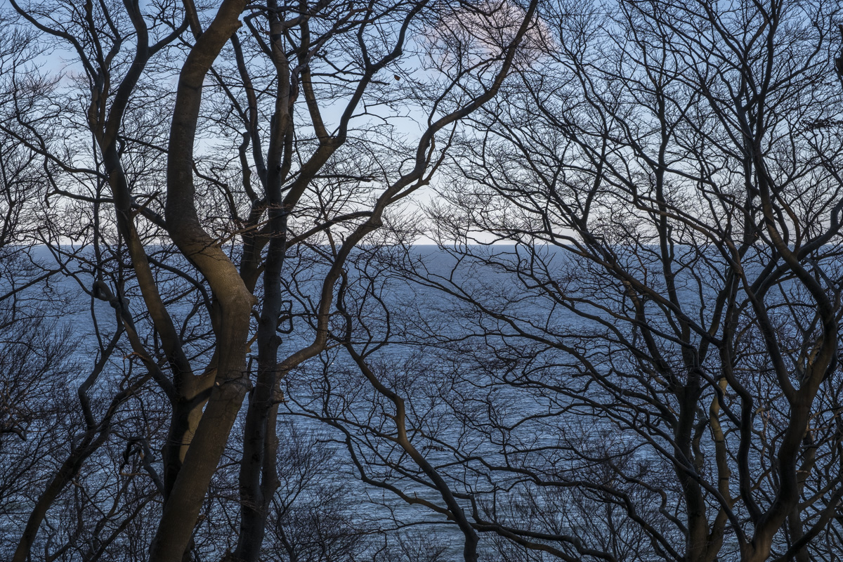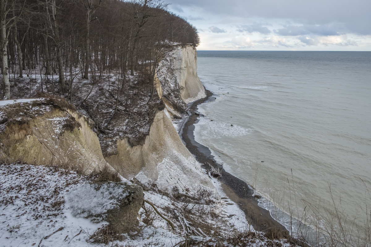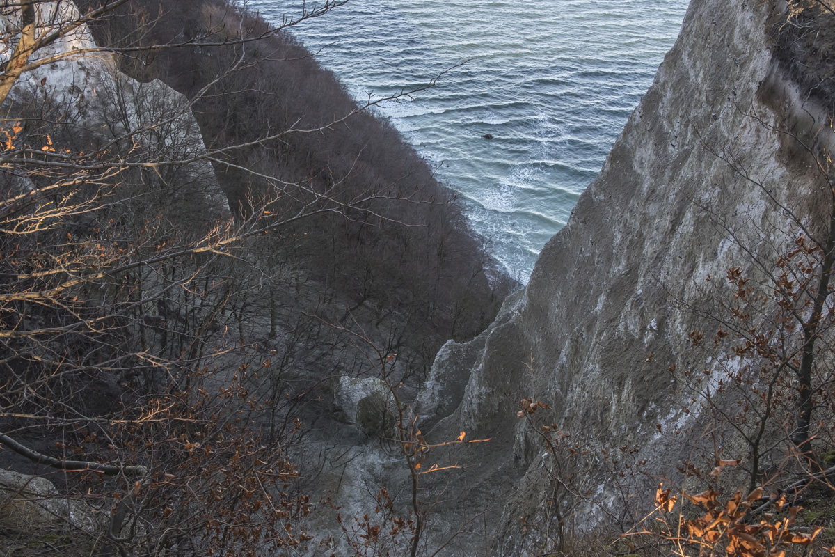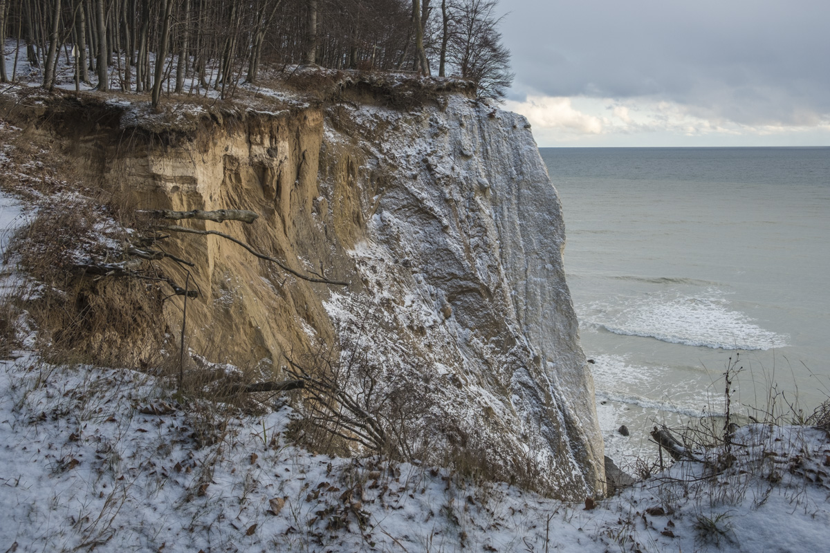 Die Kreideküste im Nordosten von Rügen muss noch einmal inspiziert werden. Vor allem am Vormittag wegen der Lichtverhältnisse. Von Sassnitz aus folgen wir dem Hochuferweg nach Norden. Die Wissower Klinken sind vor einigen Jahren abgebrochen, ein trauriger Anblick. Das macht aber nichts, der Rest ist spektakulär genug. Der Abstieg am Kieler Ufer endet mit einer steilen Treppe, zu steil für die Läufe. Wir gehen oben wieder zurück, und so bald wie möglich hinunter und nach Sassnitz. Natürlich werden Feuersteine gesammelt.