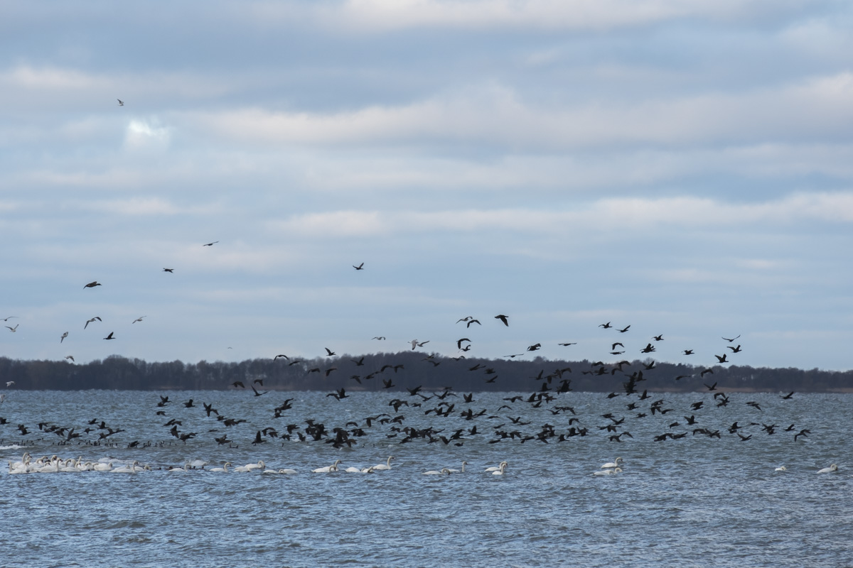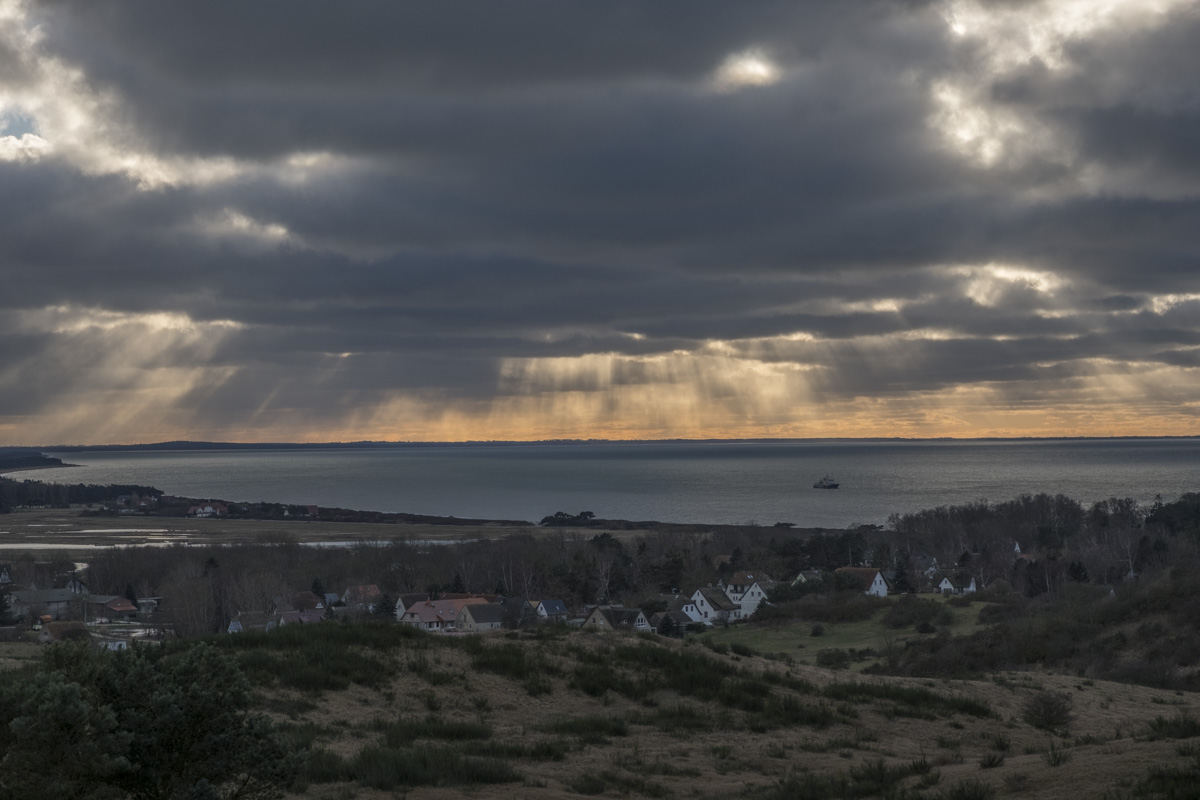 Die Ostsee hat wirklich viel Wasser… Kurz vor der Fähre ist die Straße überschwemmt, und auch in Schaprode ist das Wasser nicht zu übersehen. Wir nehmen das Schiff nach Kloster auf der Insel Hiddensee und drehen eine Runde. Der Weg nach Altbessin steht unter Wasser und Eis, und so gehen wir vom Enddorn direkt auf den Swantiberg und weiter zum und auf den Leuchtturm auf dem Dornbusch. Bei der Rückfahrt mit dem Schiff spendiert Petrus einen netten Sonnenuntergang.