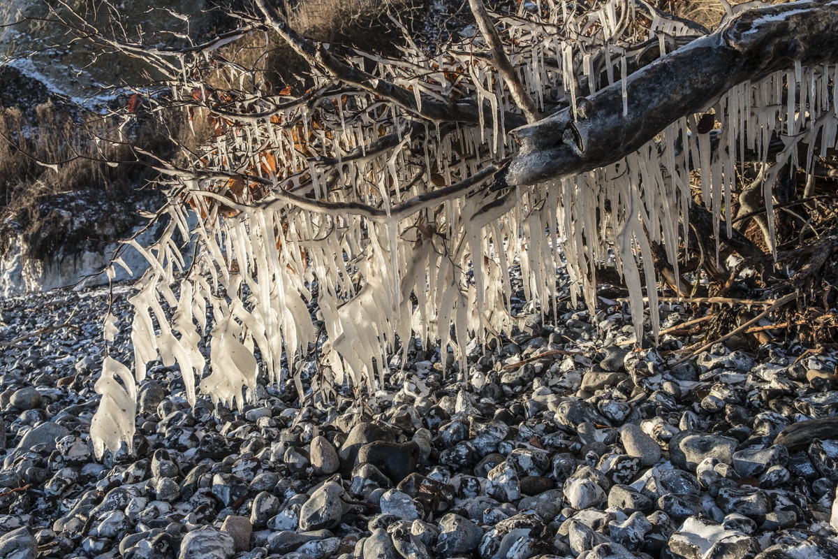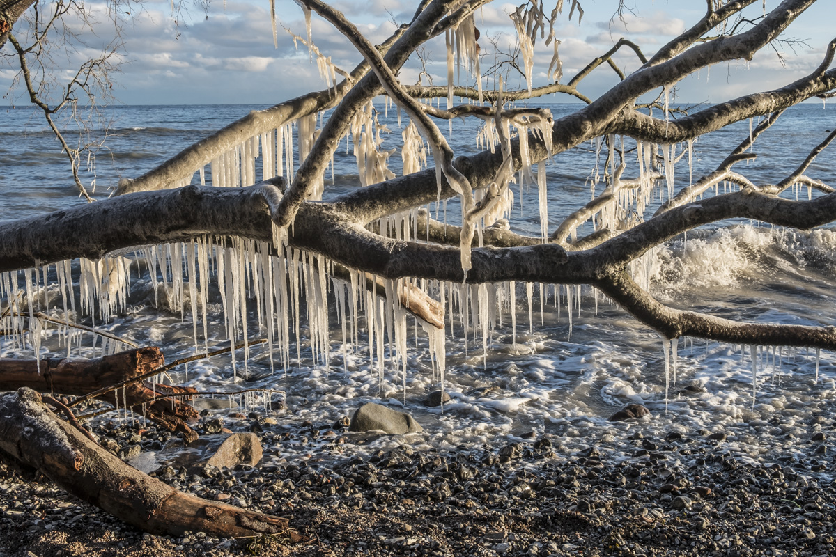 Eine kleine Runde auf der Insel Ummanz. Die Ostsee schmückt sich mit einer Eisschicht.