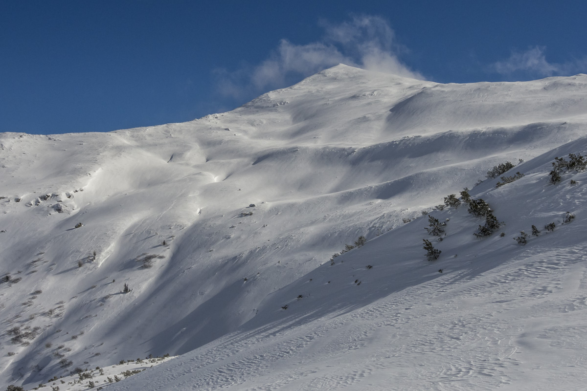 Auf der ehemaligen Skipiste steigen wir hoch, ignorieren die Sattelalm, und dann weiter auf und neben der Piste bis zum Gipfelkreuz. Auch jetzt, bei vielen grauen Wolken, eine grandiose Tiefsicht nach Norden Richtung Innsbruck. Und der eisige Föhn tobt. Gernot meint, wir könnten ja nach Norden abfahren, und er hat recht, unberührter Pulver führt uns hinab zu einer Forststraße, die uns zur Sattelalm führt, die nun nicht ignoriert wird. Der Rest ist Abfahrt auf breiter Schneise. Die Brücke hat getropft, das Auto schaut aus wie gepöckelt.