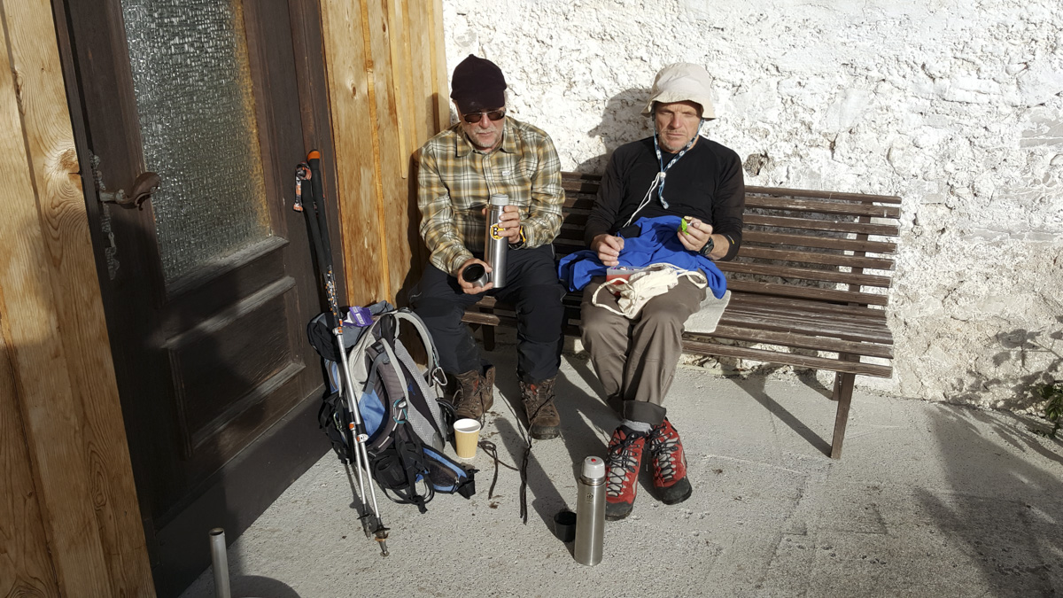 Die „Senioren“ fahren ins Inntal, nach Erl, den Erler Berg hoch und zum Wanderparkplatz Kranzhorn. Über die toll gelegene Bubenau Alm geht es hinauf zum exponierten Felszahn mit dem Doppelkreuz, eins für Tirol und eins für Bayern. Ein warmer Föhntag. Genau das Richtige für die/meine alten Knochen.