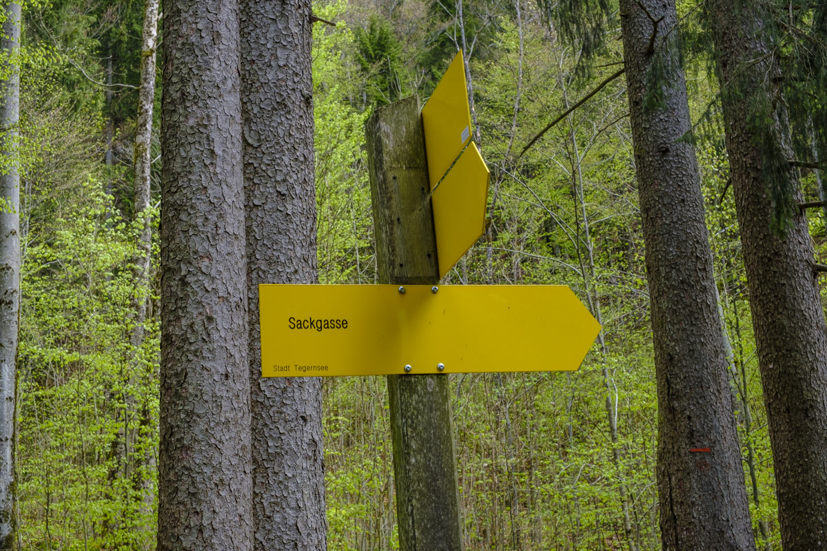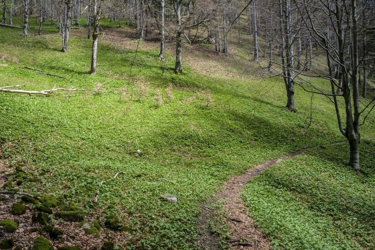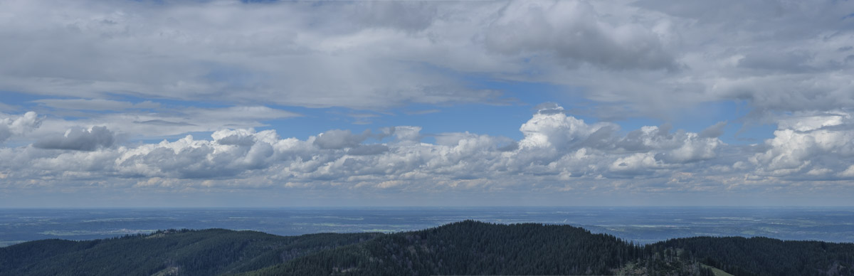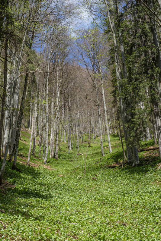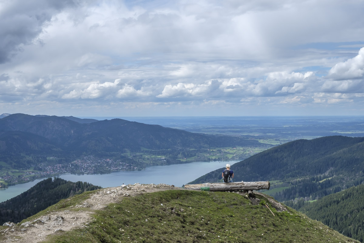Die Bärlauch-Route. Wanderparkplatz am Ende der Riedersteinstraße im Ortsteil Schwaighof/Tegernsee. Auf der Forststraße steil bergan bis zum Schild Sackgasse. Das stimmt aber nicht, der Weg quert weite Bärlauch-Felder, nicht nur optisch, auch olfaktorisch beeindruckend. Dann geht es nach links im Zickzack hinauf bis unterhalb der Gipfelwiese der Baumgartenschneid. Am Gipfel erfreuen wir uns an den Wolkenformationen.