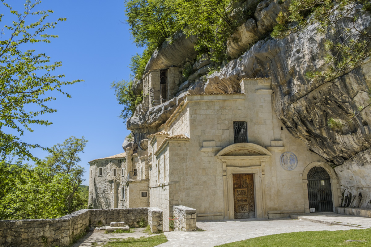 Wir fahren nach Roccamorice. Ein kurzer Abstieg zur Eremo di San Bartolomeo. Auch hier weiß G. einiges zu berichten. Auf der anderen Talseite über weite Wiesen mit toller Sicht auf Gran Sasso und Konsorten dahin und hinein in den Wald. Wir erreichen eine Straße und – oha – da steht der Bus. Noch ein Besuch der Eremo di Santo Spirito, und finito für heute. Abends gibt’s Spaghetti a la guitarra.