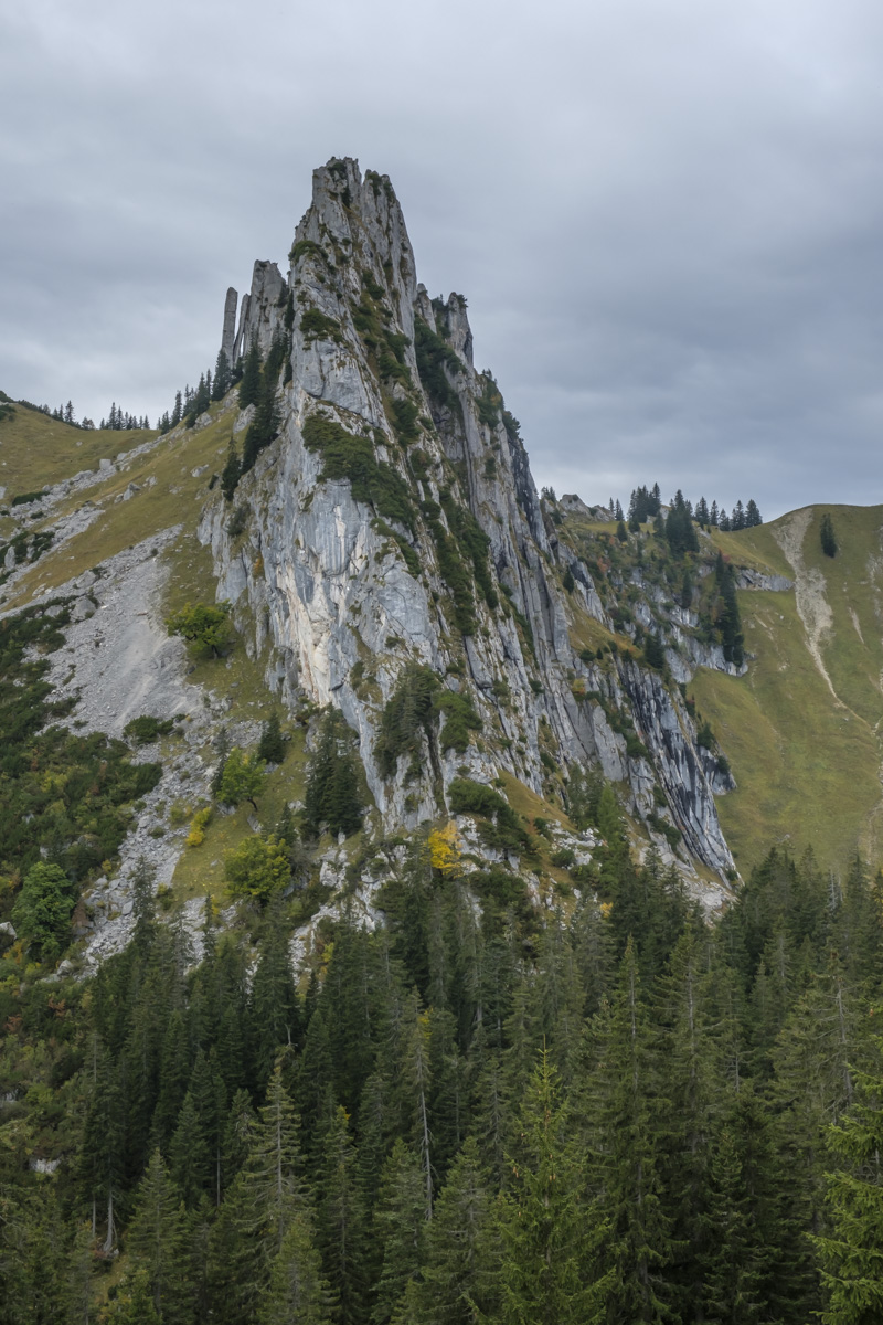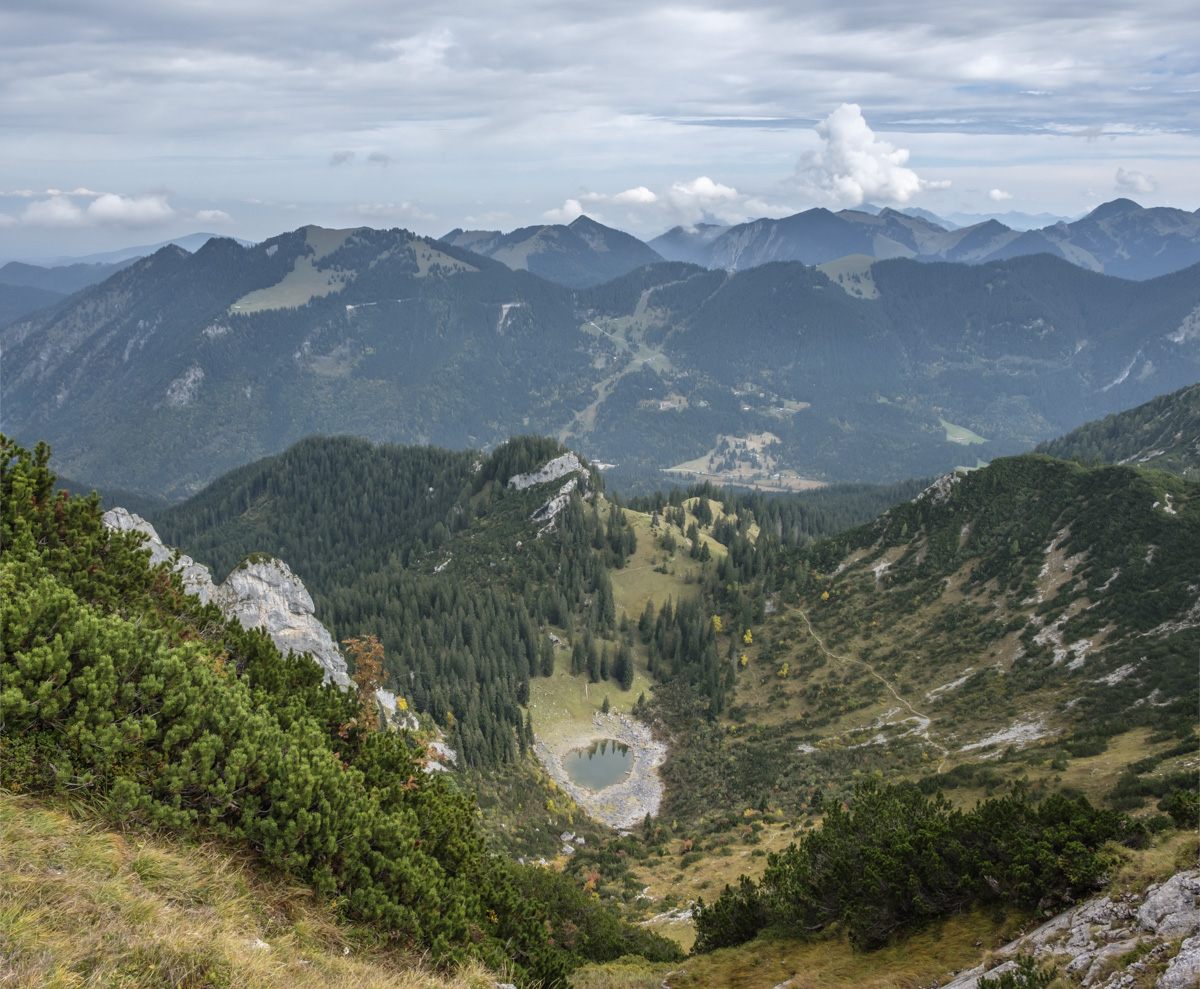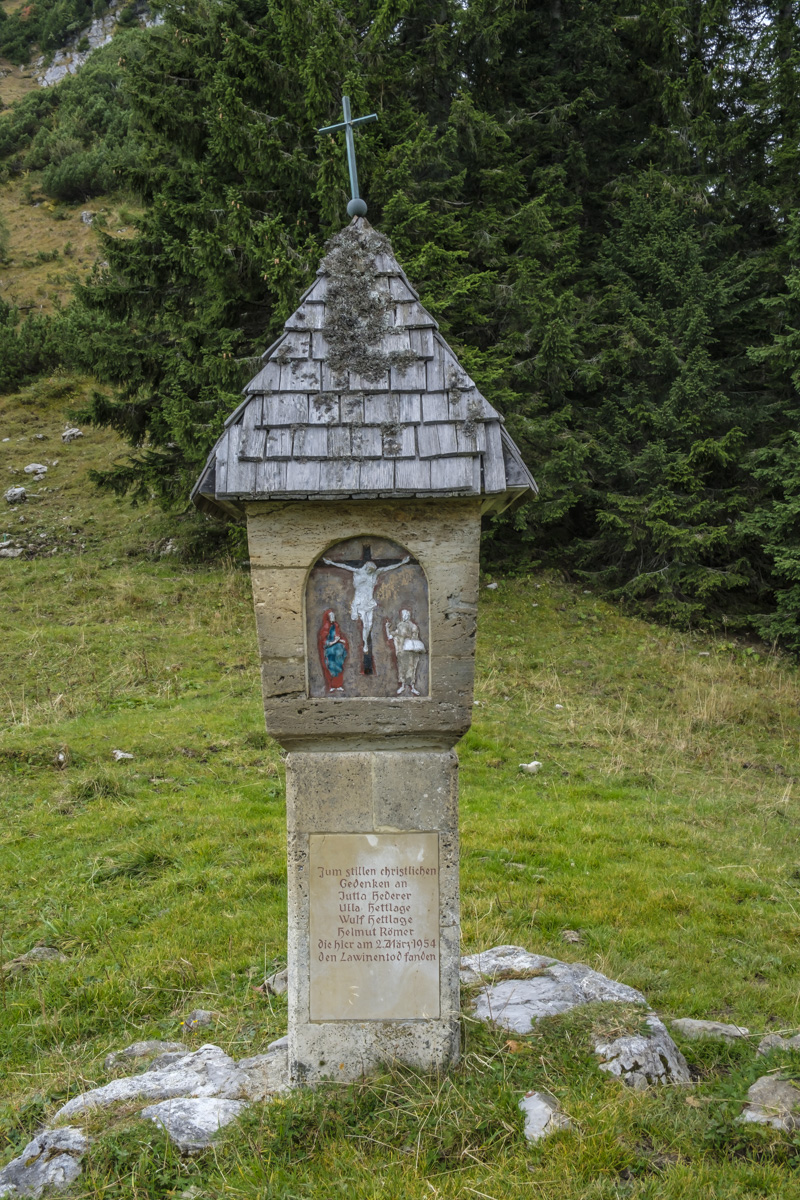 Am Parkplatz Hufnagelstube an der Mautstraße zur Monialm geht’s los. Auf der Teerstraße zur Siebli-Alm, dann im felsigen Batz weiter bis zum Hettlage-Gedenkstein. Nach rechts, und dann steige ich nach links hoch auf den Ostgrat und folge ihm bis zum Gipfel des Risserkogels.