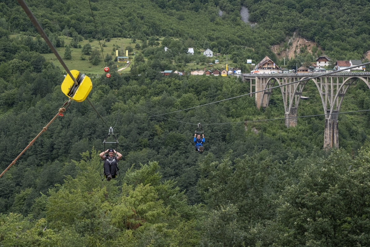 Die Tara-Schlucht ist der längste und tiefste Canyon Europas. Sie wird natürlich mit einer Seilrutsche überquert. Weiterfahrt in den Nationalpark Biogradsksa Gora und zum See Biogradsko Jezero – trotz Regen gut besucht. Wir gehen hinauf zu den Almhütten Katun Goles und übernachten dortselbst.
