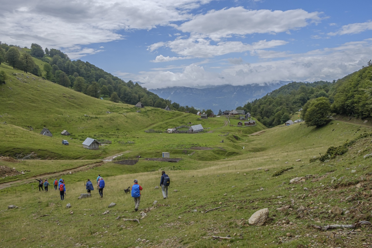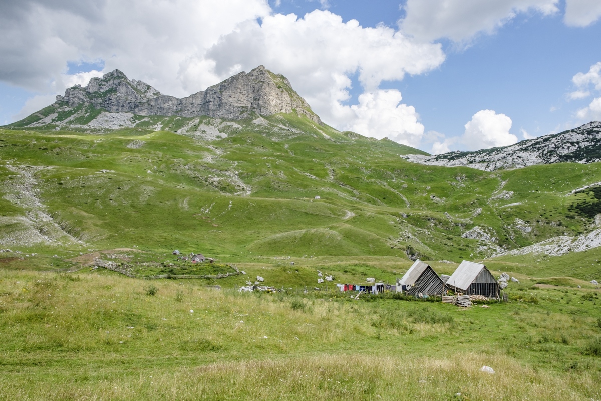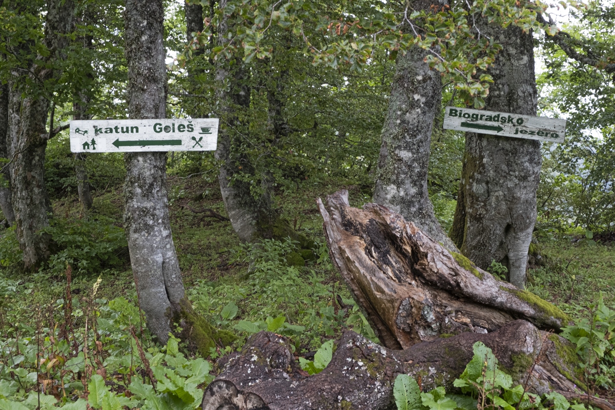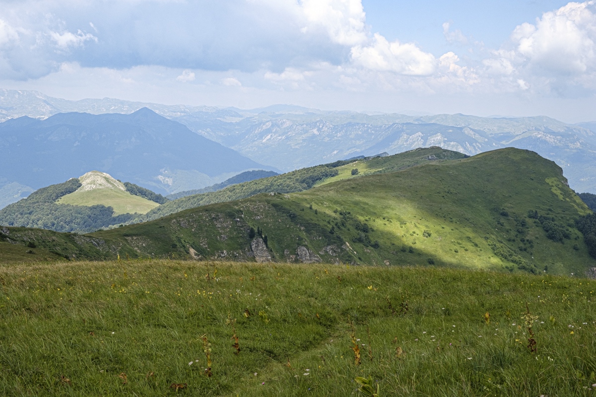 Höhenwanderung auf der Bjelasica. Wegen der Wolken nur geringe Fernsicht. Unspektakulär. Die Berge werden teilweise den Skipisten geopfert. Übernachtung im Almdorf Katun Vranjak.
