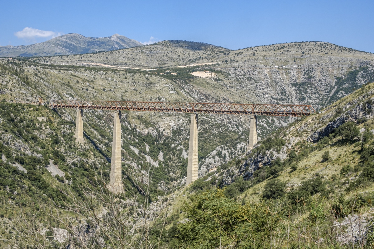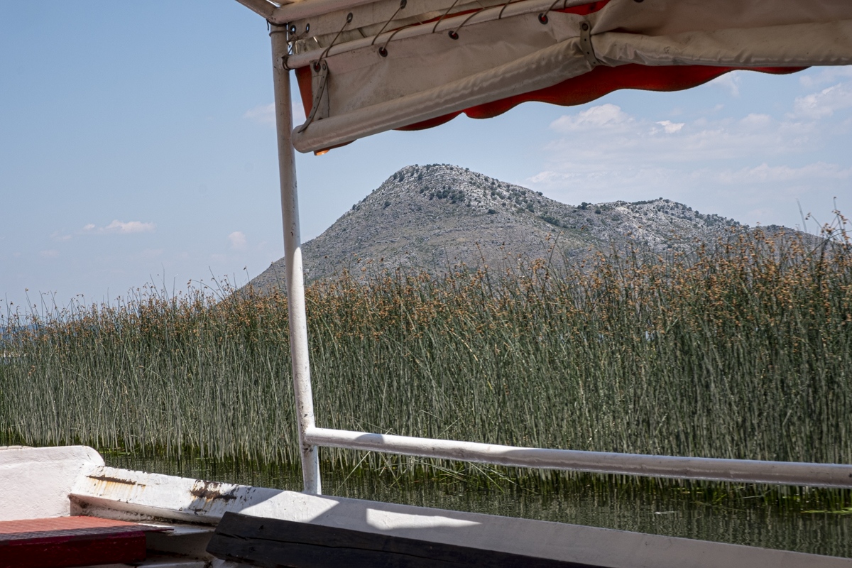 Mit dem Zug (ein deutsches Vermächtnis) stets hoch über dem Talgrund hinunter in die Ebene um Podgoriza. Hat einen gewissen Reiz. Mit dem Boot auf dem Skutarisee herum und dann Bewirtung in einem Weingut – ähnlich einer Kaffeefahrt. Übernachtung in Centinje.