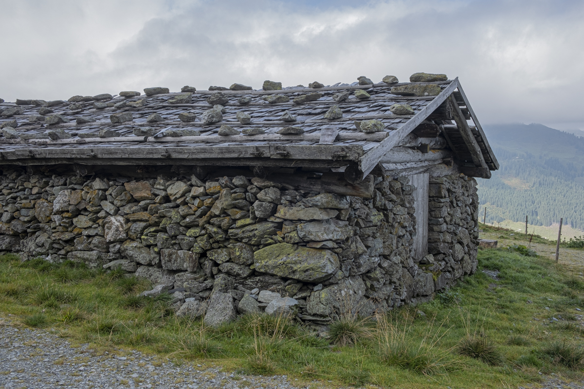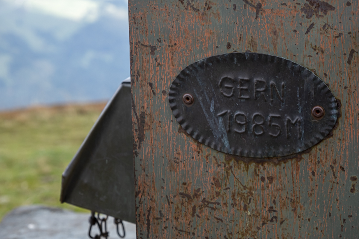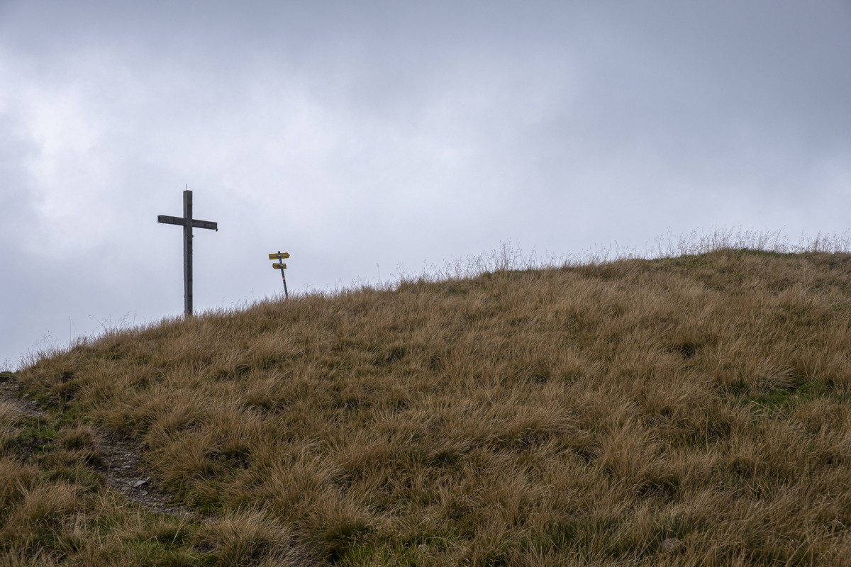 Nicht zu glauben, die Straße zur Schönangeralm in der Wildschönau ist immer noch mautfrei. Also los geht’s, allerdings hängen statt der versprochenen Sonne dicke graue Wolken am Himmel. Über die Breiteggalm und ihren Hochleger, durch Alpenrosen- und Heidelbeersträucher erreiche ich den Breitegg Gern-Gipfel. Wolken allüberall.