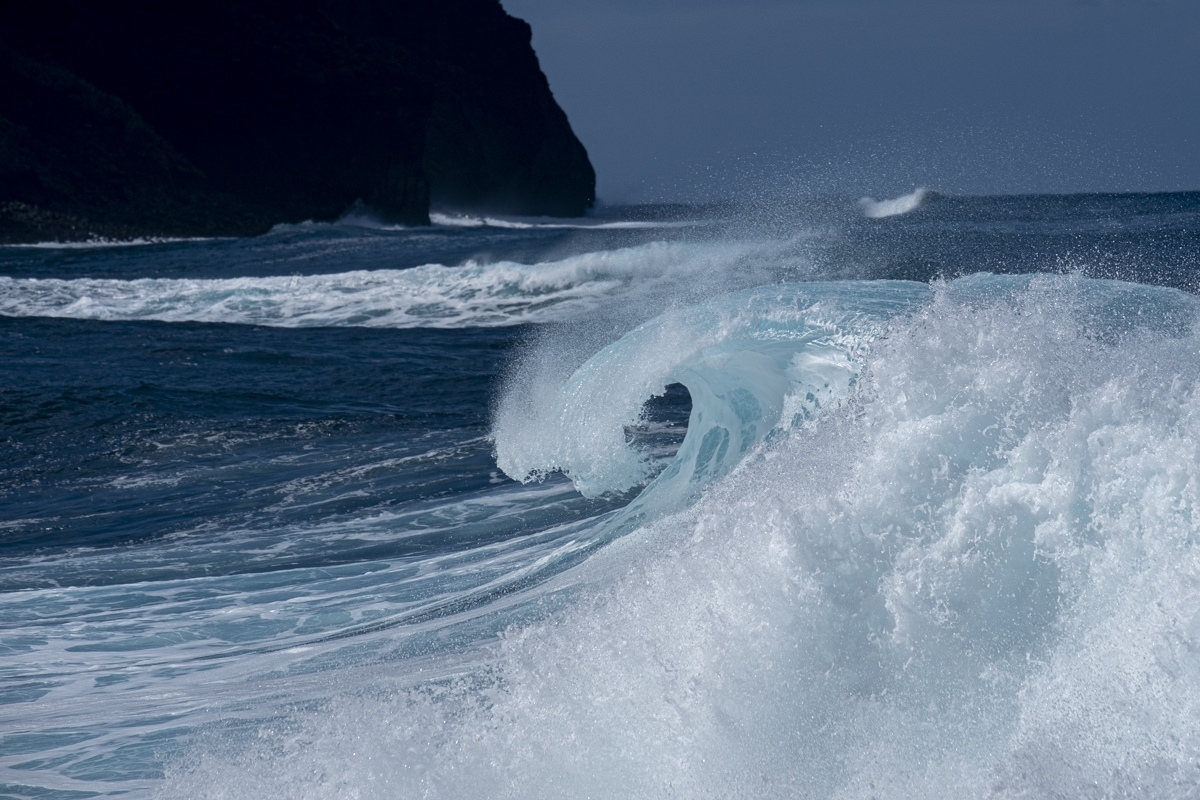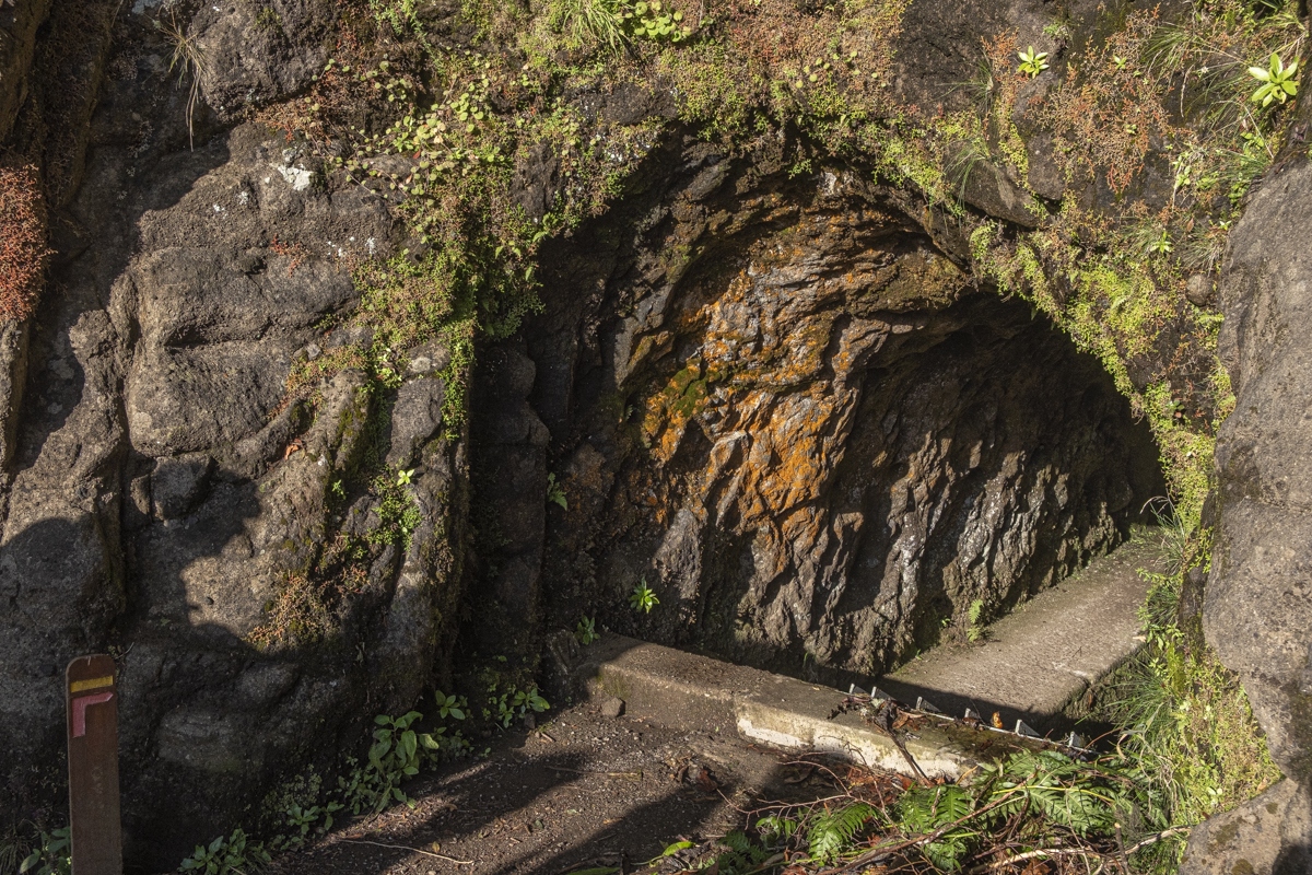 Zwei längere – mehrere 100 Meter – Levada Tunnels stehen auf dem Programm. Eduardo zeigt die angemessene Körperhaltung, nach vorne rechts gebückt. Wir fahren hoch zum Pass, marschieren an der Levada entlang zum Tunneleingang, ich gehe einige Meter hinein, die Felswand links von mir will mich mit aller Kraft in die Wasserrinne drücken, ich wehre mich, spüre die Panik. Ich muss zurück. Die Mitwanderer hinter mir gehen ebenfalls zurück, einer geht wieder hinein und benachrichtigt den Führer. Eduardo telefoniert mit dem Busfahrer, ich werde am Pass abgeholt und zur Unterkunft, den Apartamentos Gaivota, in Porto Moniz gefahren. Ich nutze den Nachmittag zum Baden im Felsschwimmbecken…