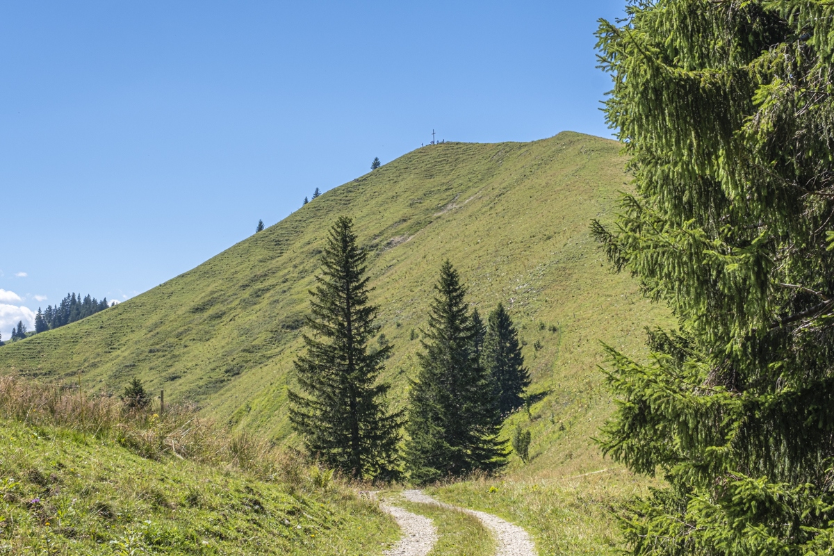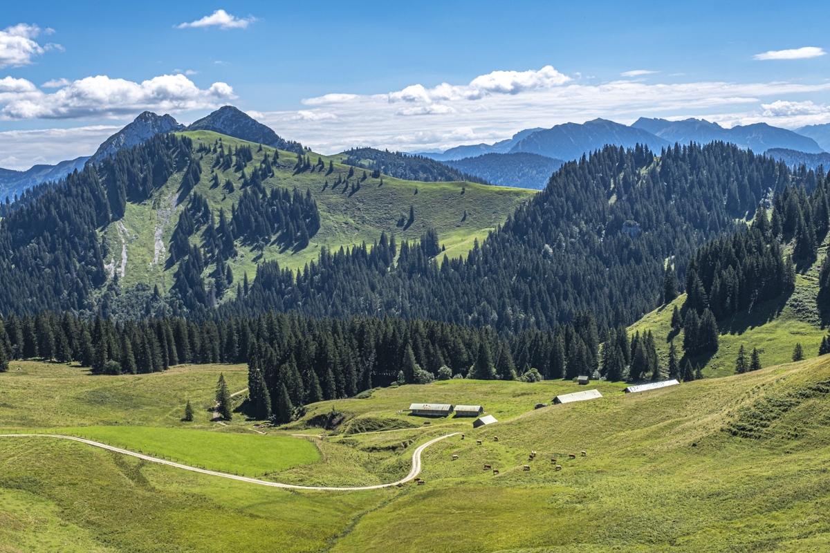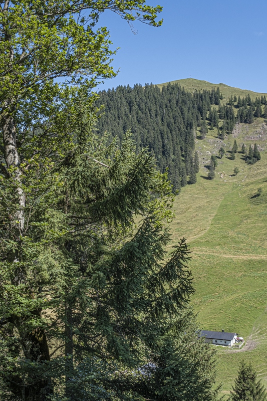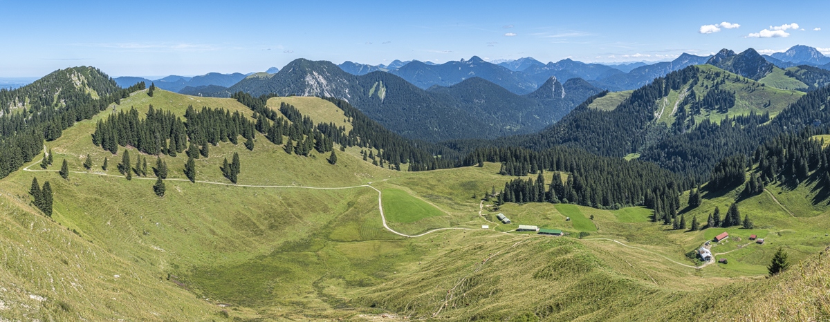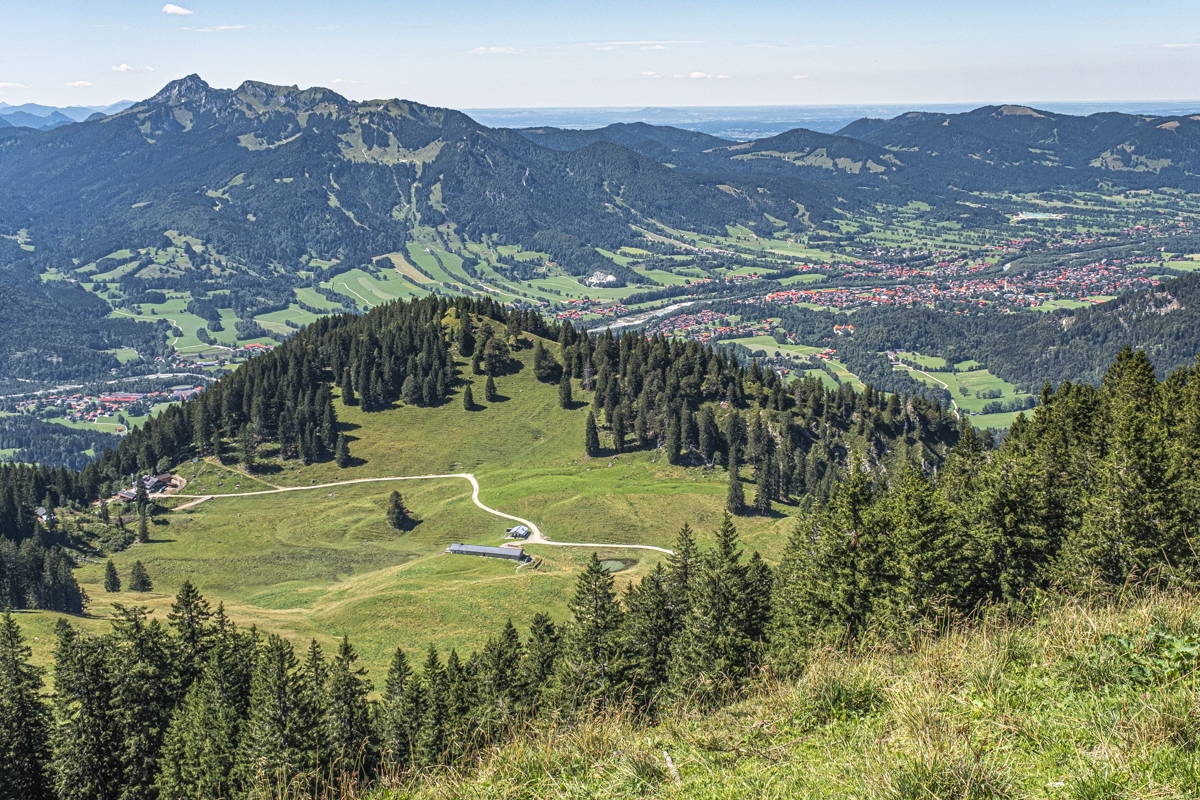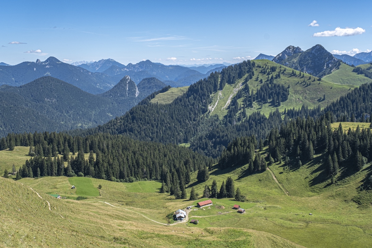 Hinab zur Lenggrieser Hütte, die einen sterilen Eindruck auf mich macht, und weiter auf dem originellen Gratsteig über Grasleitenkopf und Grasleitenstein hinunter zu den weiten Wiesen. Wegweiser gibt es keine. Die Tour endet symmetrisch, also mit einem langen Hatsch. Aber schön ist sie trotzdem.