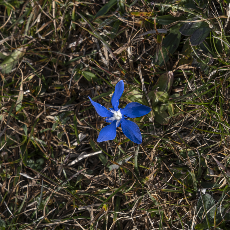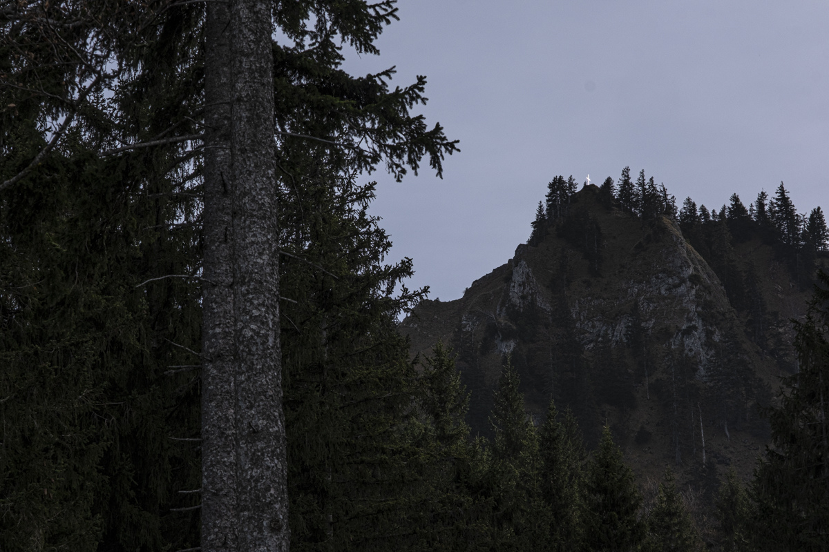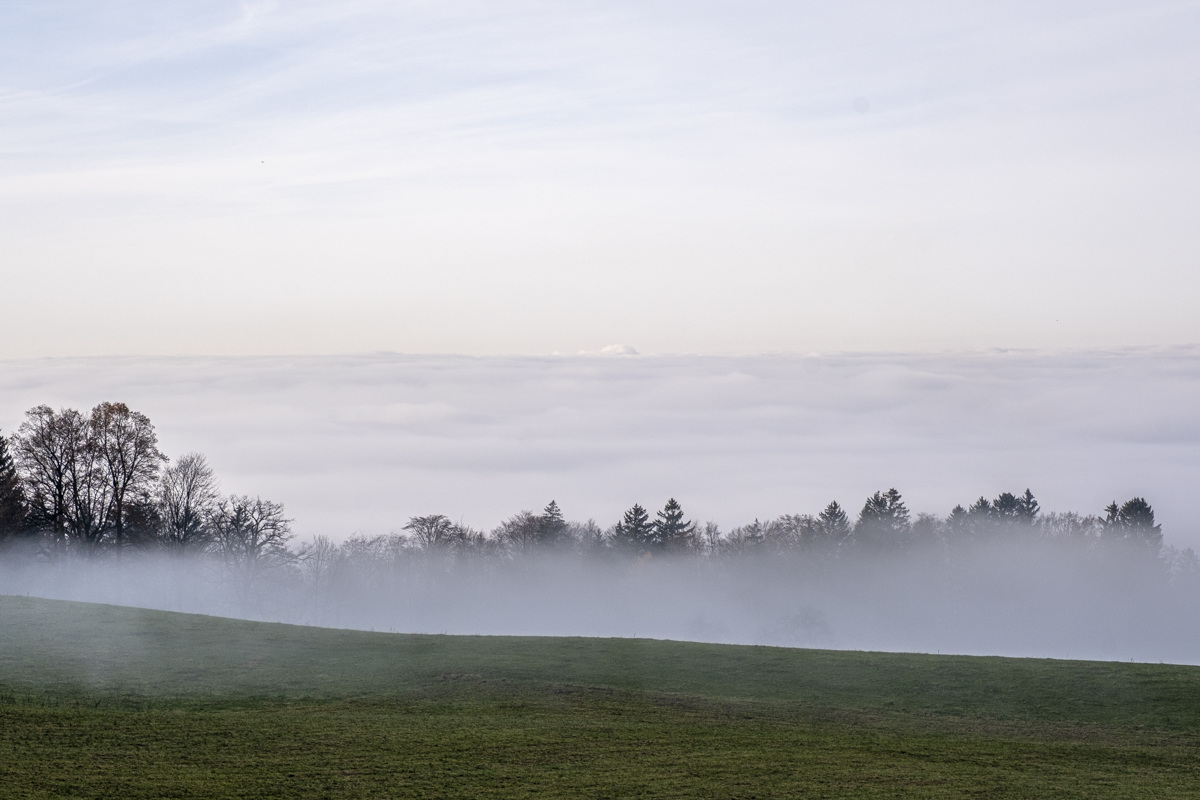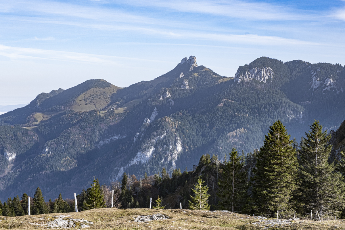 Start ist am Wanderparkplatz Soilach südlich von Frasdorf. Auf der Forststraße geht es zum im Winter geschlossenen Bauernhof Winterstube und weiter auf einem Steig, gelegentlich unterbrochen von einer Straße, zu den Laubensteinalmen und zum buckeligen Laubenstein-Gipfel. Leider ist der Chiemsee unter einer Wolkendecke begraben. Wegloser Abstieg nach Süden zu einem nicht markierten Steig, der unter dem Hammerstein talauswärts führt. Eine kurze Passage auf einer Straße, und der Steig setzt sich fort. Von plötzlich nach links unten führenden Spuren lasse ich mich irritieren und folge ihnen. Ein Blick auf den GPS Track hätte mich eines Besseren belehrt. Ein batziges Steilstück im Wald fördert nun Trittsicherheit und Konzentration. Ich erreiche eine Forststraße, gehe nach rechts und später an der natürlich geschlossenen Frasdorfer Hütte vorbei und weiter zur Winterstube und weiter …