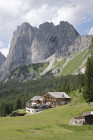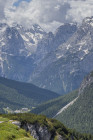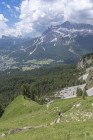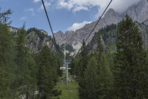 Der Sessellift Rio Gere/Son Forca in der Cristallo-Gruppe unterhalb des Passo Tre Croce wird als Steighilfe benutzt. Wir queren hinüber zur Forcella Zumeles 2072m. Der Wind pfeift, wir finden ein windstilles Plätzchen. Der Abstieg führt durch steile grüne Wiesen, vor uns das Becken mit Cortina und den einrahmenden Felsriesen. Der Wunsch nach Flügeln entsteht, hinfliegen in den weiten freien Raum mit den schützenden Berggestalten rings herum. Weiter zum edlen Rifugio Mietres (siehe oben) und zur Talstation.