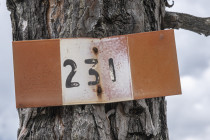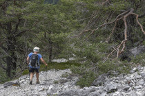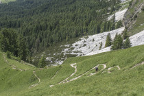 Es ist bewölkt, eine kleine Runde wäre angesagt. Ich studiere die Karte und sehe die Wege 230 und 231 östlich von San Vito. Wir finden 230 nicht nur auf der Karte, gehen so dahin, und gelangen zu einem breiten sich bereits wieder begrünenden Schuttfeld. Steinmänner weisen nach oben, steil, eigentlich sollte es etwas Kleines werden, bis die Männer sich teilen. Einige weisen nach oben, andere nach unten. Wir gehen nach unten, steil, Überraschung, es ist 231, und schließlich gibt es auch noch einen Steig zurück oberhalb der Straße. Keine spektakuläre Runde, die Berge sind in Wolken, irgendwie doch entspannend.