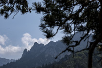 Der Startparkplatz ist der Festplatzparkplatz. Ich gehe los, eine Teerstraße zieht später hoch zum Wappbachkopf, und ein wurzeliger hochstufiger steiler Steig endet am Gipfelkreuz des Dötzenkopfs. Hier ist Sicht auf Bad Reichenhall und den gegenüberliegenden dunstigen Hochstaufen. Es ist schwül. Zurück in einer großen Schleife mit aufwändigen Befestigungen über die Bildstöcklkapelle zum Parkplatz. Nicht jede Tour kann ein Volltreffer sein.