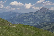 Der Gaisberg-Sessellift in Kirchberg ist ein angenehmes Ziel. Von der Bergstation folgen wir einer Straße nach rechts, bis bald links ein unbeschilderter Steig abzweigt. Es geht hinauf, und dann in einer längeren Querung nach links zur Bärstättalm. Wieder weiter hinauf zum Bärstättkreuz. Bisher immer eine Super-Aussicht. Über einen welligen Rücken – der Gaisberg-Gipfel wird nicht bemerkt – zum Gaisbergjoch. Viel Rundumsicht. Wir steigen ab zur noch geschlossenen Kobinger Hütte und queren zur Bärstättalm, da waren wir heute schon einmal. Sie ist offen, was zum Bleiben veranlasst. Der Rest ist der direkte Abstieg zur Bergstation. Eine sehr schöne Runde. Mit Gudrun.