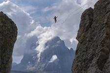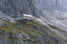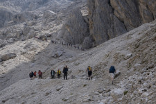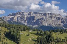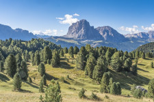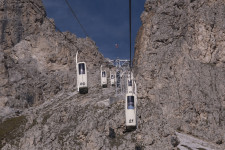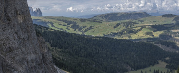 Mit der kuscheligen Zweiergondel hinauf und hinein in die Langkofelscharte. Landschaftlich wilder Abstieg zur Langkofelhütte. Wir umrunden den Langkofel, zunächst mit tollem Blick auf die Seiser Alm.