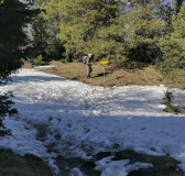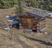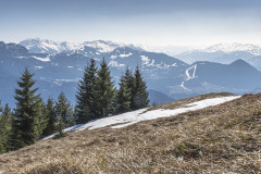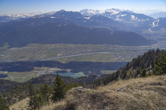 Nach Kramsach und dann hoch Richtung Brandenberg bis kurz vor einem Marterl auf der linken Seite. Hier beginnt rechts ein Weg oberhalb der Straße, der leicht fallend die Westseite der Voldöpper Spitze quert, bis Wegweiser nach oben weisen. Die Weisung ist durchaus steil. Tatsächlich sind es zwei Spitzen mit 2Hm Unterschied, den Abzweig zur nördlichen, niedrigeren verpassen wir, wir bleiben sozusagen direkt über dem Inntal, liegend in warmer Sonne und dürrem Gras, aufgelockert mit weißen Krokussen. Wir überschreiten den Gipfel nach Osten und folgen den Schildern nach Brandenberg, anfangs auf vereistem Steig. Zu weit nach Osten dürfen wir nicht gehen, wir kommen zur Rodelbahn, steigen später weglos zur Straße ab, und dann vorbei am Marterl zum Parkplatz. Mit Gudrun.