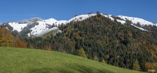 Der erste Schnee in den Bergen hat Auswirkungen auf die Wahl der Bergziele, favorisiert werden nun die geringeren Höhen. Auf der Karte finde ich den Chiemkogel, und in den unendlichen Weiten des Internet einen GPS Track. Wir parken bei der Volksschule unterhalb von Rettenschöss. Der Staudinger Bach gibt die Richtung vor, und ab der Staudinger Grotte geht es zügig bergauf. Der Gipfel ist eine unscheinbare Kuppe, direkt unterhalb eine Alm mit zugehöriger Teerstraße, was aber keine Auswirkungen auf die nette Aussicht hat – Kranzhorn, Spitzstein, Unterberghorn, Heuberg, Unterberghorn, Inntal, Pendling, Brünnstein, Wendelstein, … Wir machen eine Überschreitung, der Track hilft bei den schneebedeckten Wiesen hier oben, den Weg zu finden und auf ihm zu bleiben. Mit Gudrun.