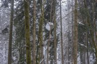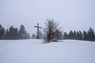 Wasenkogel heißt das (Gipfel)Kreuz direkt oberhalb der Holzer Alm. Aber die Holzer Alm ist schon lange nicht mehr unter uns, ein grüner Bauwagen ist an ihre Stelle getreten. Dadurch und mit der überbreiten Forststraße hat die Wanderung zu der Wiese mit der kleinen Aussicht auf den Tegernsee ihren Reiz verloren. Im Winter bietet die weiße Schneedecke zumindest einen neuen Blickwinkel. Die Stille und der Nebel verfremden den Ort. Mit Peter.