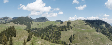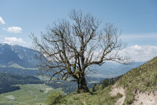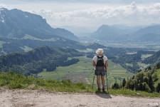 Parken in Schwaigs beim Schwemmturm. Steil hinauf zur Hitscheralm, gerade im Ausbau, und auf dem aussichtsreichen Rücken an einer weiteren Alm vorbei, ebenfalls gerade im Ausbau, unter Vermeidung der Straße, soweit möglich, zum Brennkopf. Einer der seltenen Gipfel mit 360° Panorama.