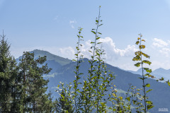 Eine Wiederholungstat. Vor zwei Jahren im März waren wir bereits da, es lag noch Schnee. Heute ist es heiß. Vom leeren Parkplatz des Badhauses (Betriebsurlaub) geht es hinauf zur Lengau Kapelle und weiter nach Lengau, einem idyllisch gelegenen Bauernhof mit dem Pölven im Rücken. Die Forststraße lässt sich abkürzen, keine elektrischen Biker mehr. Das Gipfelkreuz auf dem Juffinger Jöchl ist eingehegt von Laubbäumen, die Sicht ist dementsprechend.