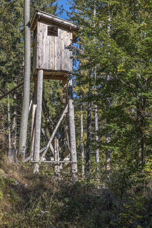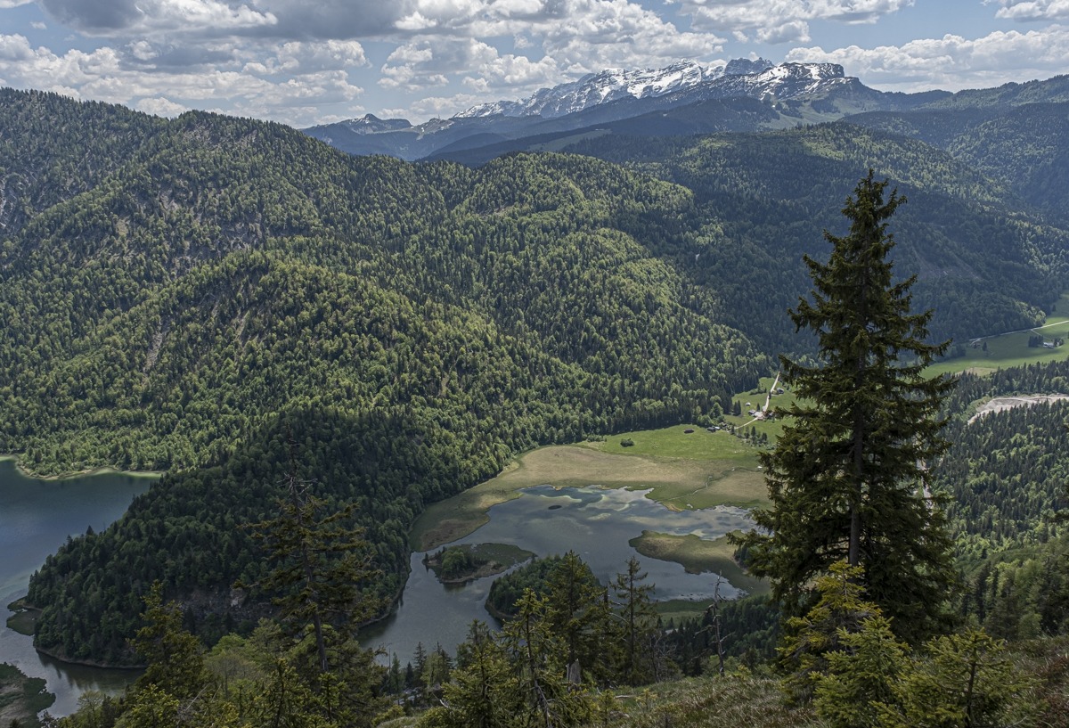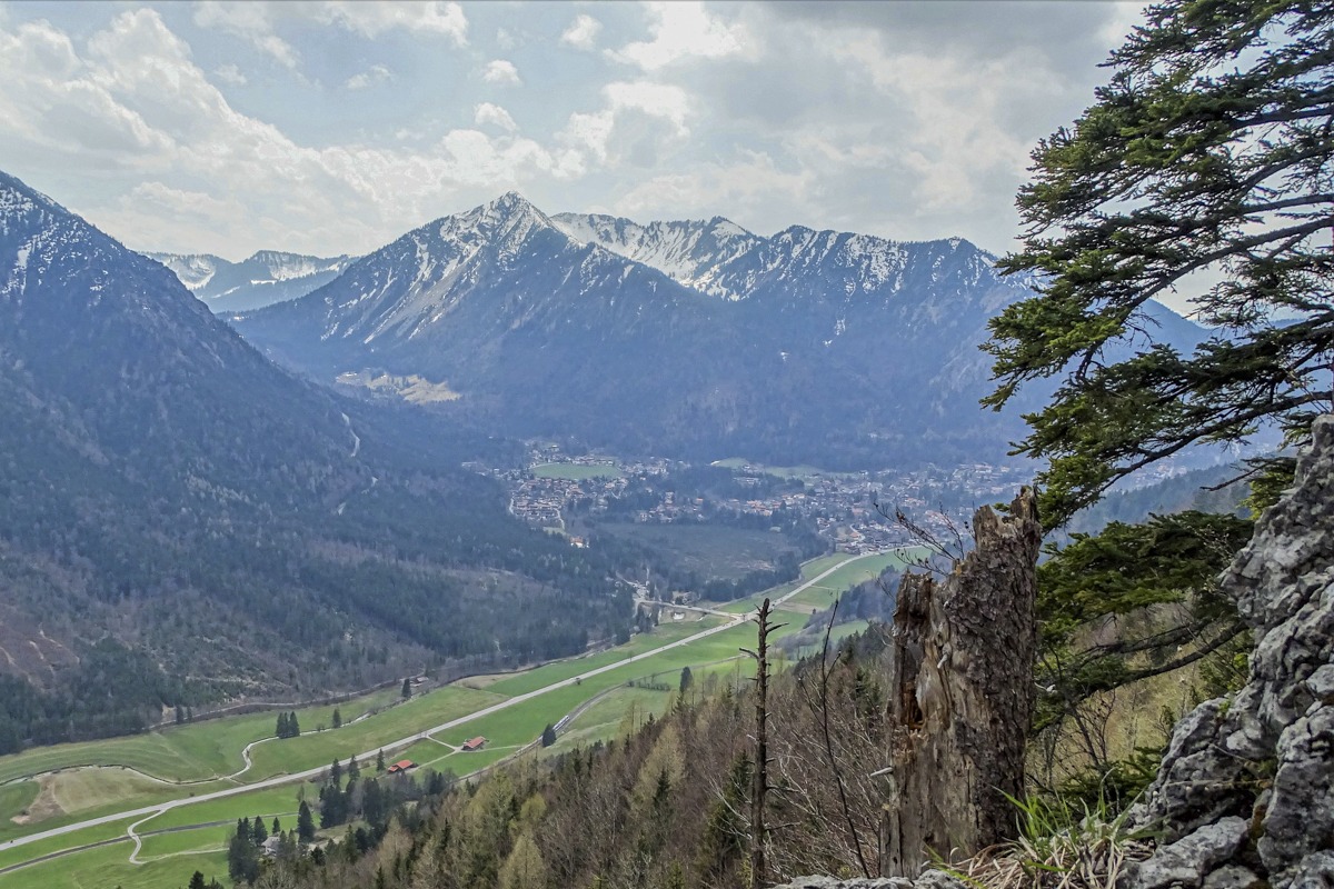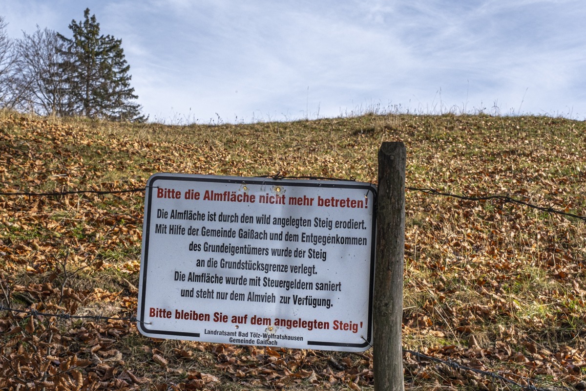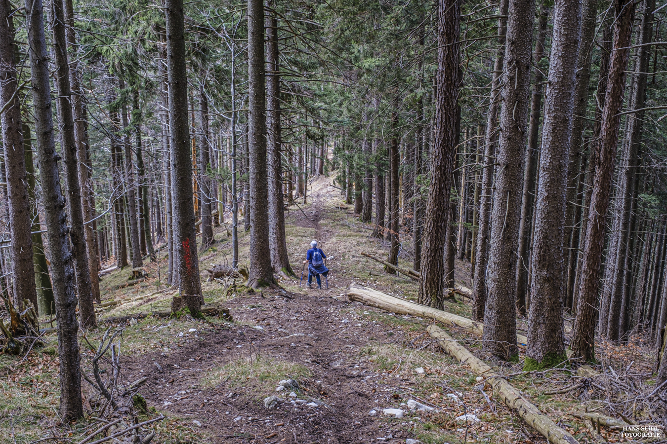 Am Wanderparkplatz in Ohlstadt geht’s los. Die Forststraße lässt sich oft auf Steigen abkürzen. Ab und an kommt ein …