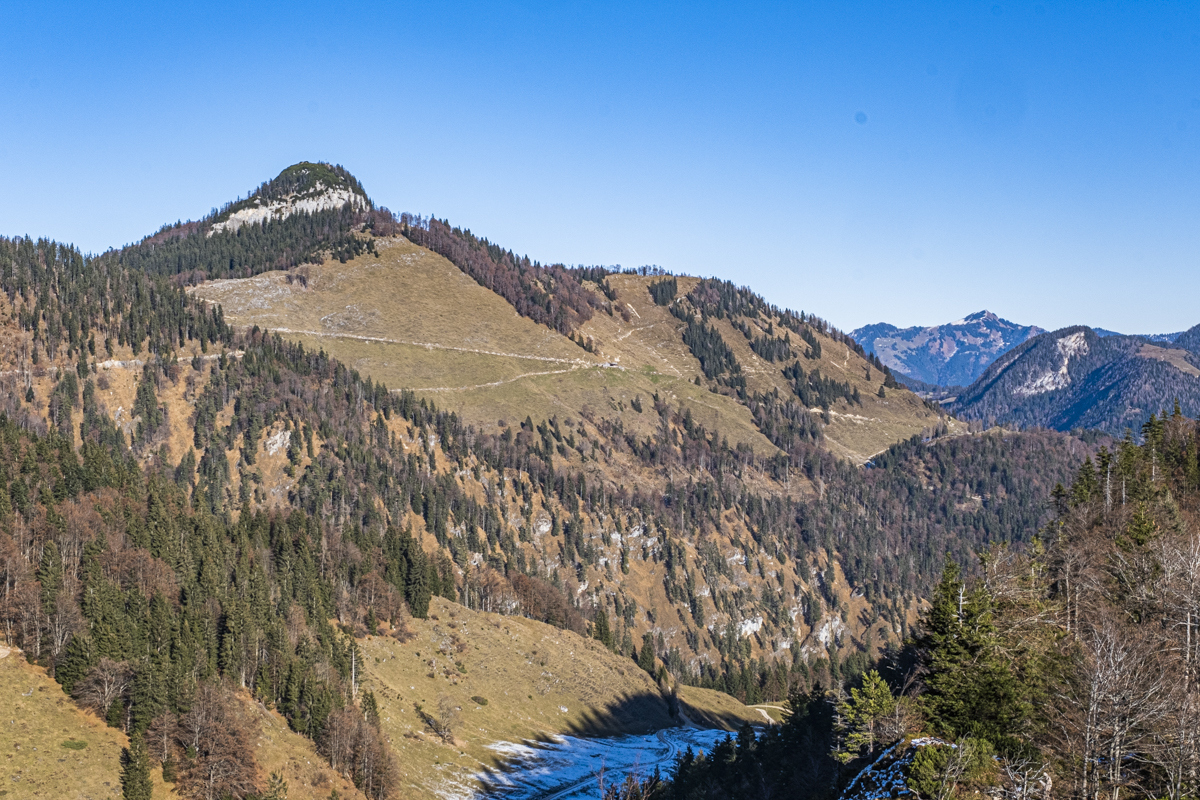 Von Geitau auf sehr langer Straße zur Spitzingalm. Und weiter hinauf, das Türkenköpfl lassen wir rechts liegen und gehen nach links mit kurzem Felskontakt zur Kirchwand. Liegen …