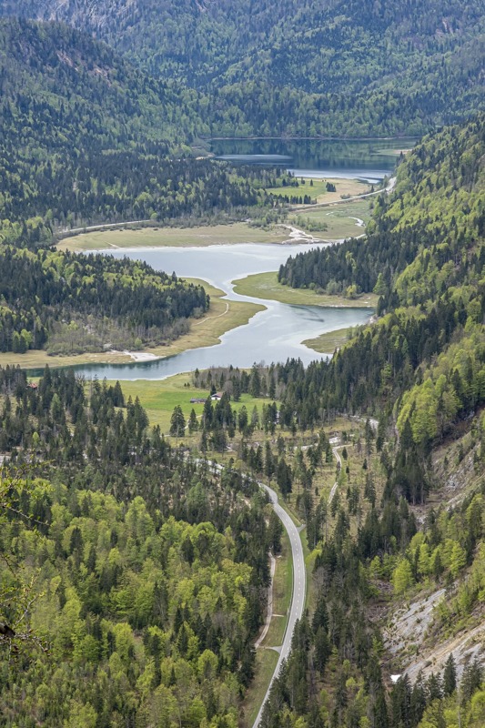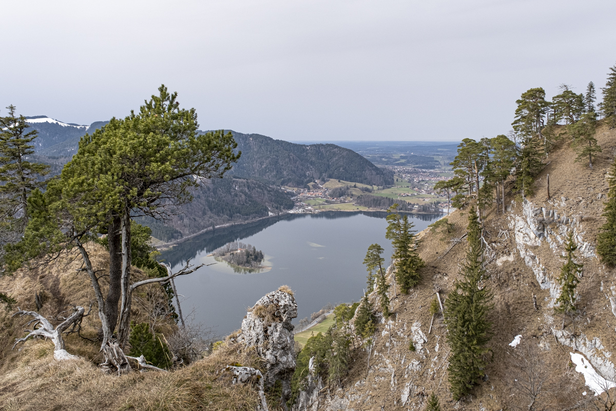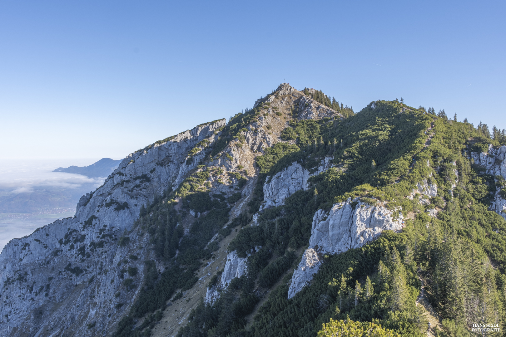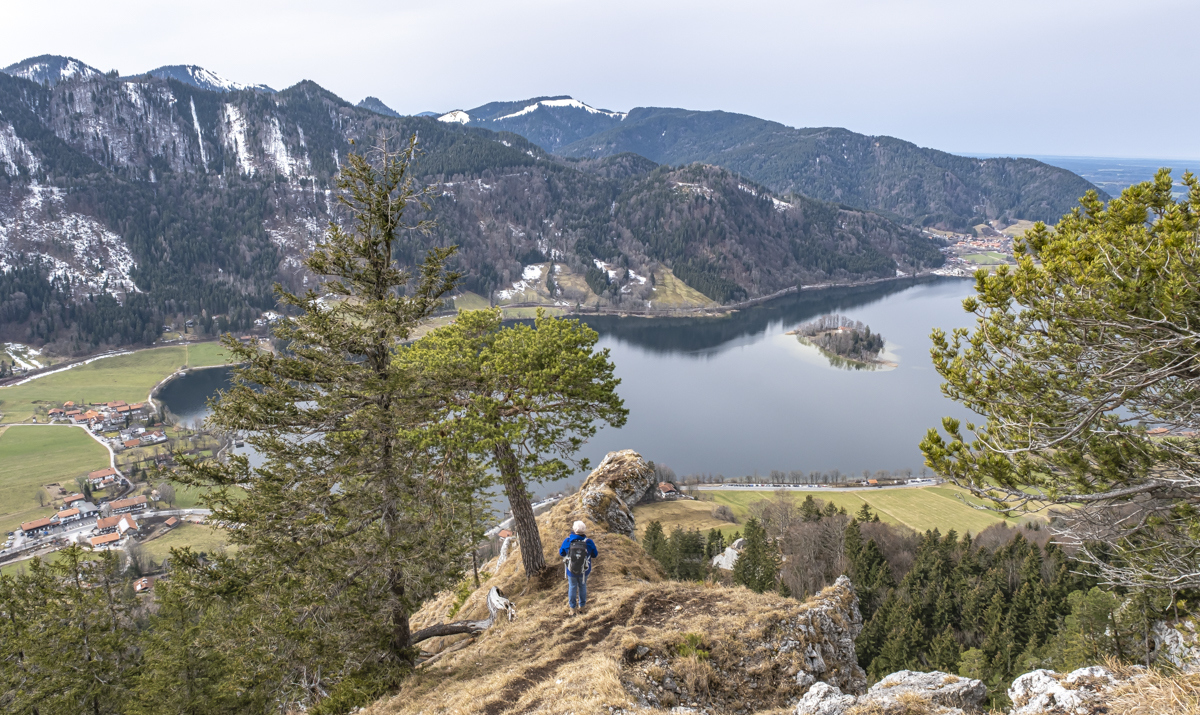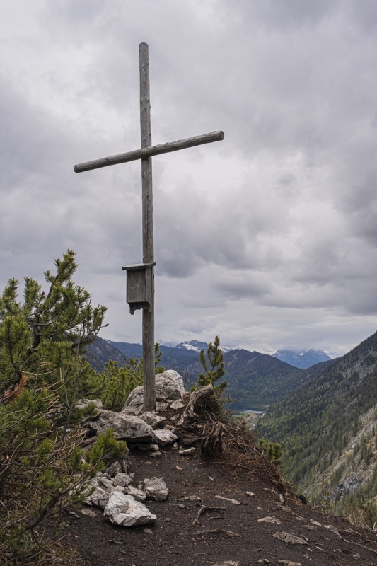 Wir parken am Maxlrainerweg in Fischhausen am Schliersee. Los geht’s Richtung Probstboden auf einer Forststraße. Vor dem Probstboden zeigt nach links ein guter und selten ausgesetzter Steig ab, der die Hänge hoch oberhalb des Schliersees quert. An einer Schulter führen Steigspuren nach rechts hinauf, die später schwächer werden. Wir erreichen den Hirschgröhrkopf mit seinem kleinen Gipfelkreuz. Die Bäume erlauben nur einen engen Blick auf den Wendelstein. Aber auch ein aussichtsloser Gipfel sollte doch hin und wieder Besuch bekommen. Zurück zur Schulter und dann zur Südlichen Leitner Nase, einem Highlight, eine schmale Felsrippe ragt weit hinaus in den Raum über den Schliersee, so scheint es zumindest. Unbedingt erlebenswert. Die Nördliche Leitner Nase ist weniger spektakulär. Weiter nach Norden absteigen und in einem spitzen Winkel zurück an der Burgruine Hohenwaldeck vorbei zum Auto. Mit Gudrun.