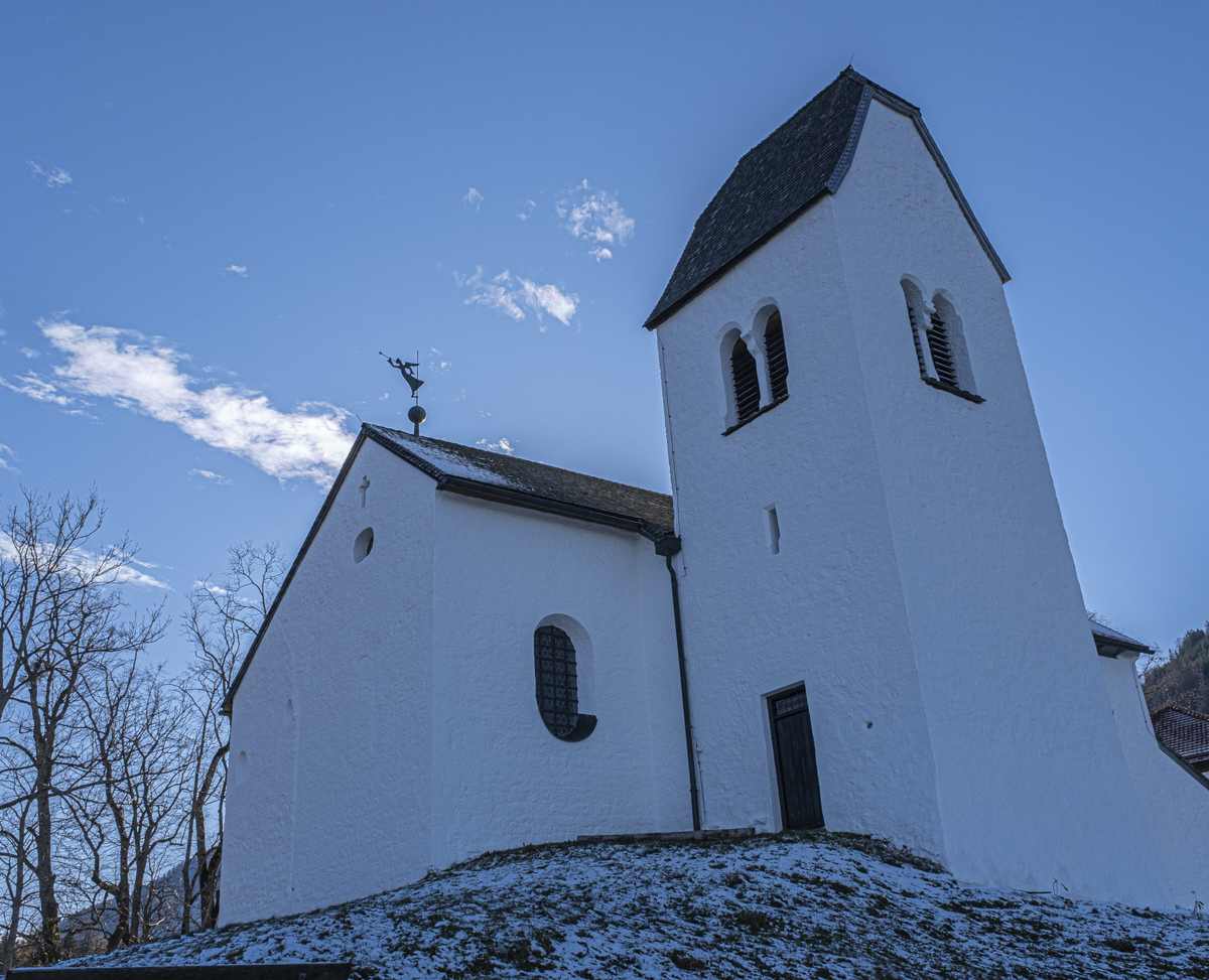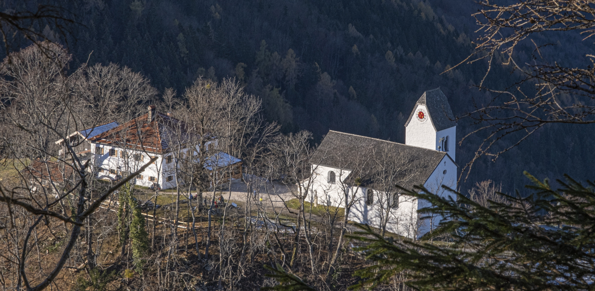 Die weiße Kapelle auf dem Petersberg kennt jeder, der die Inntal-Autobahn schon mal hin oder her gefahren ist. Der Große Madron ist nebenan. Los geht’s vom Falkenstein-Parkplatz in Flintsbach. Auf der Fahrstraße an der Ruine vorbei hinauf zur Kapelle und der geschlossenen Wirtschaft. Nette Aussicht ins Inntal. Auf der anderen Seite führt ein Steig (gesichert mit Drahtseil) hinunter zum Fahrweg zum Hohen Asten. Gleich hinter dem Bauern am Berg zweigt links der Weg ab zum Großen Madron. Die zahlreichen Bäume behindern allerdings den Weitblick. Zurück zum Parkplatz über den Wagnerberg. Mit Gudrun.