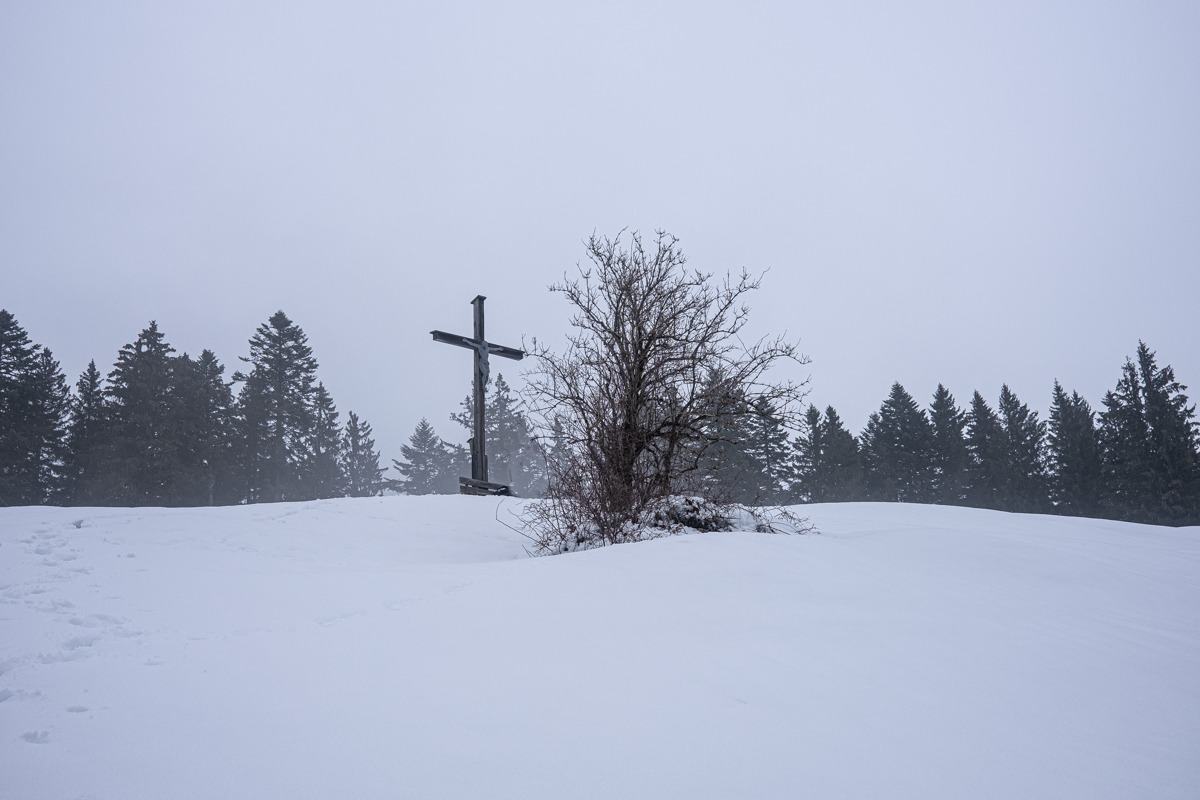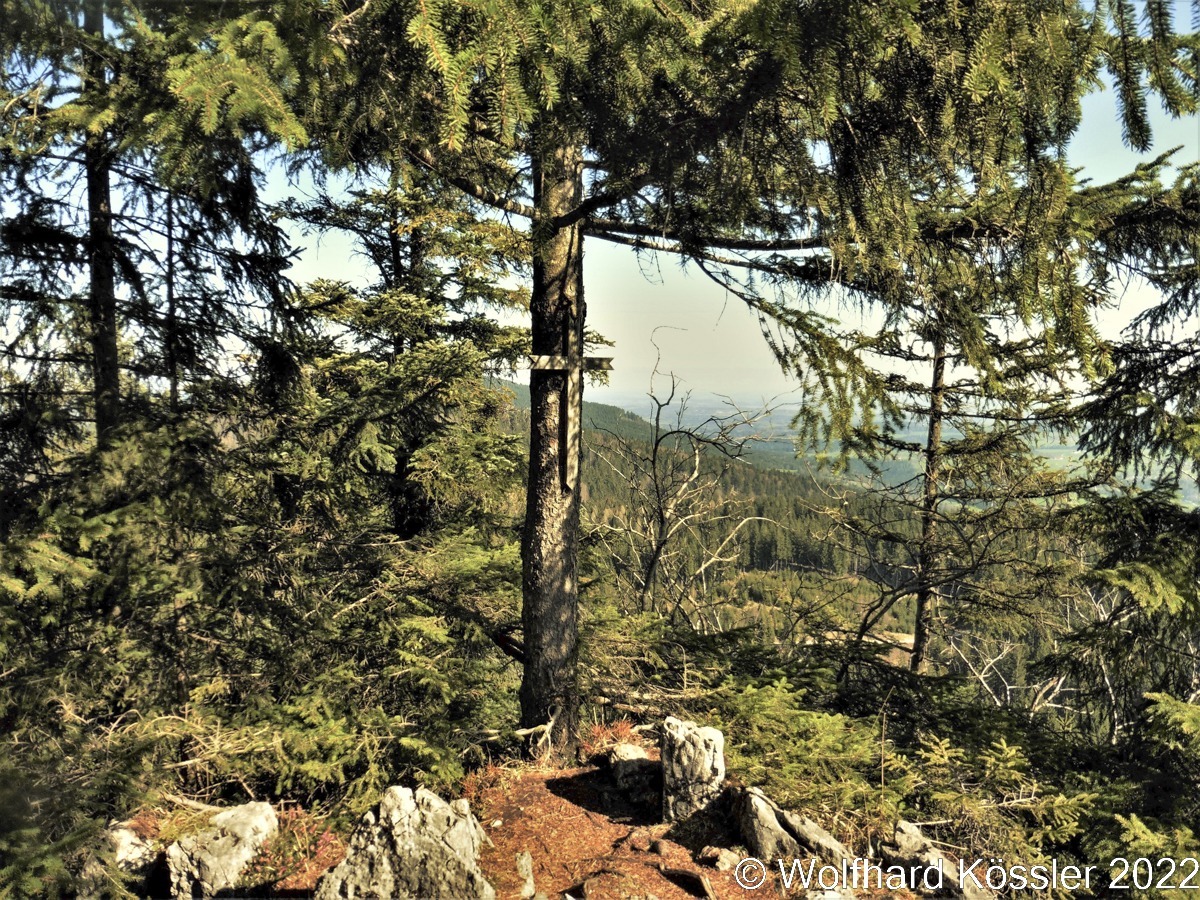 Nachtrag 28.11.2022 – Ein aufmerksamer Wanderer hat doch ein Gipfelkreuz entdeckt.