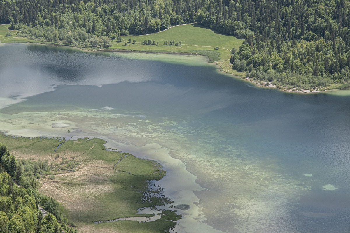 Der Gipfel ist heute ein See. Wir fahren nach Hinterwössen zum Wanderparkplatz. Auf steiler Straße neben dem Schlierbach hinauf und …