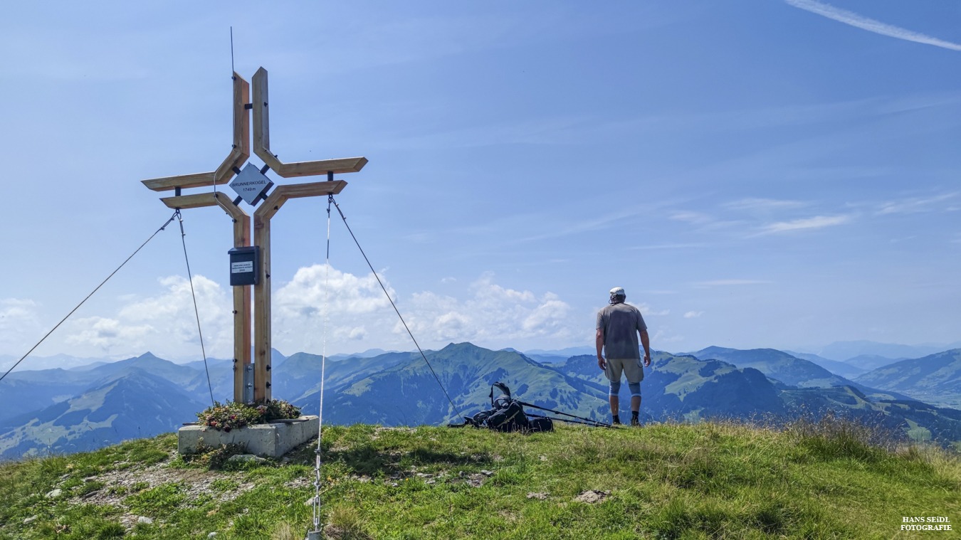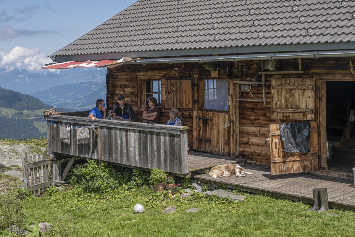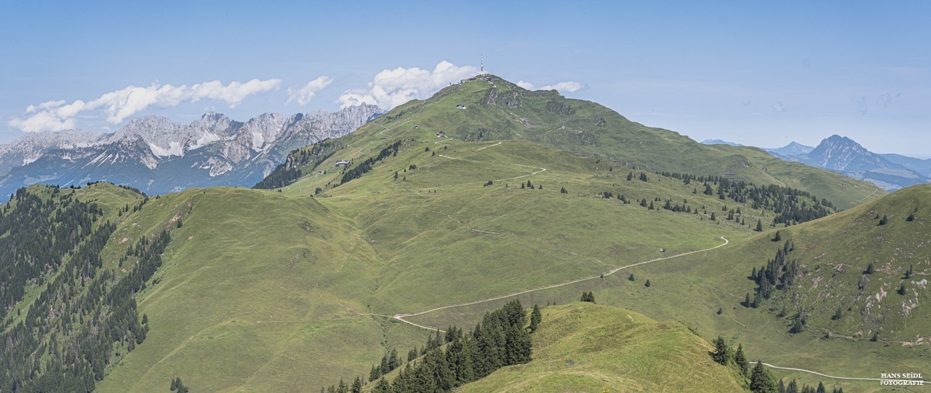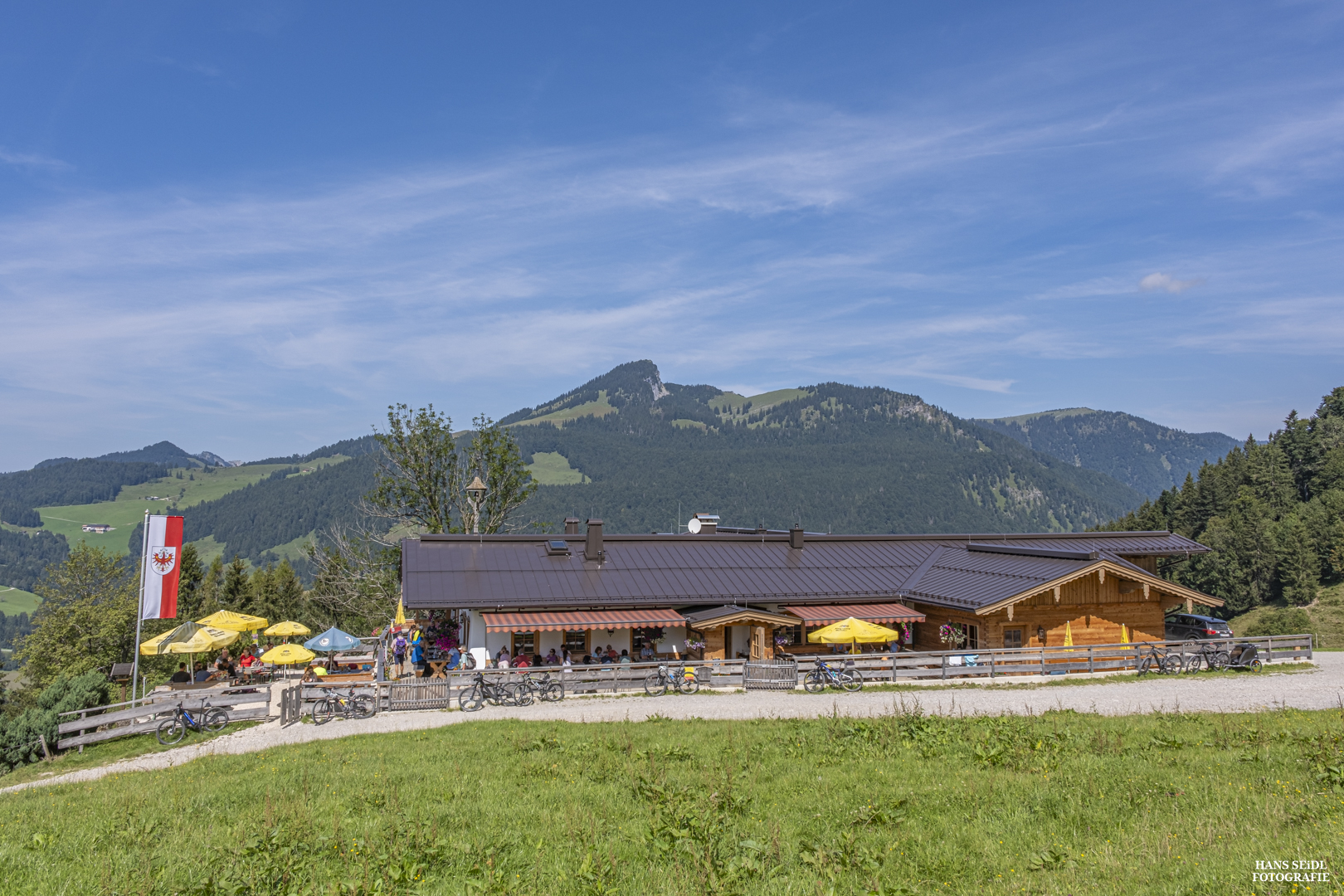 Der Gaisberg-Sessellift in Kirchberg ist ein angenehmes Ziel. Von der Bergstation folgen wir einer Straße nach rechts, bis bald links ein unbeschilderter Steig abzweigt. Es geht hinauf, und dann in einer längeren Querung nach links zur Bärstättalm. Wieder weiter hinauf zum Bärstättkreuz. Bisher immer eine Super-Aussicht. Über einen welligen Rücken – der Gaisberg-Gipfel wird nicht bemerkt – zum Gaisbergjoch. Viel Rundumsicht. Wir steigen ab zur noch geschlossenen Kobinger Hütte und queren zur Bärstättalm, da waren wir heute schon einmal. Sie ist offen, was zum Bleiben veranlasst. Der Rest ist der direkte Abstieg zur Bergstation. Eine sehr schöne Runde. Mit Gudrun.
