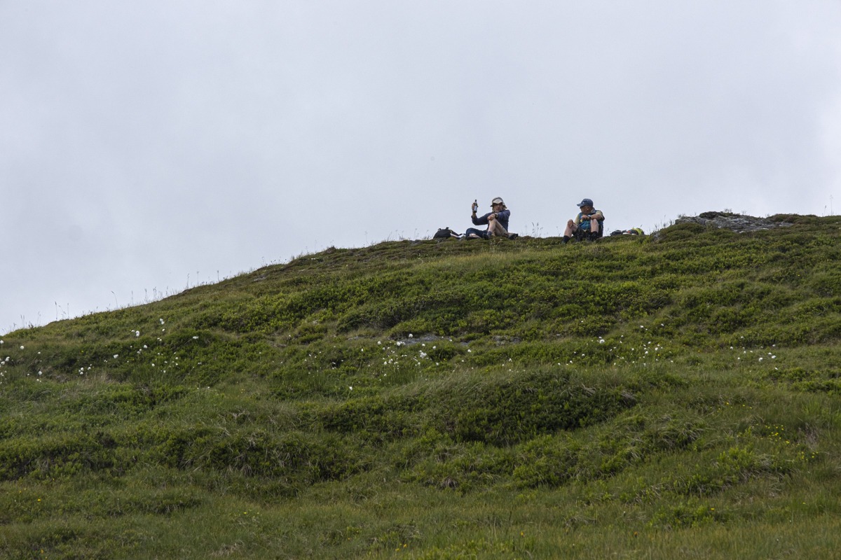 Wir starten von der Gamskogelhütte – leider viel zu spät (Stau) – um halb elf. Die Sonne brennt, der Boden ist nass und also die Luftfeuchtigkeit hoch und bald auch der Blutdruck. Ein Aufstieg in Abgeschiedenheit. Auf kleinen Pfaden. Die Miesenbachalm erreichen wir aber über die Straße. Danach gibt es den vollen Genuss der weiten sattgrünen Hänge der Kitzbüheler Alpen. Eine Wohltat für die Seele. Der Körper kämpft weiter, und in dem Sattel vor dem Gamsbeil ist für mich endgültig Schluss. Auf demselben Weg zurück. Mit Joachim und Jürgen.