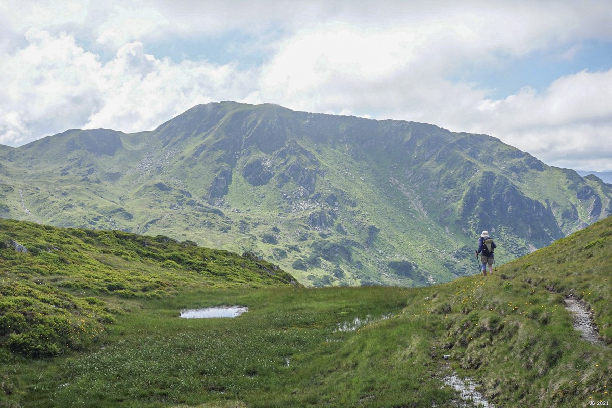 Es geht los mit der Auffahrt zum Hochtristenhaus und dem Knoten 2214m. Ein sonniger Tag am und im Weißensee folgt. Dann wieder eine Auffahrt, diesmal zur Emberger Alm, und hinauf auf den Naßfeldriegel 2238m und eine weite Runde über den Hohen Grenten und das Ochsentörl. Wegen Regen bleiben wir am nächsten Tag zuhause. Das Wetter wird nicht wesentlich besser, wir stiegen ein in den Sessellift zur Naggler Alm am Weißensee und gehen hoch zur Kohlröslalm. Die letzte Auffahrt zur Leppner Alm. Wir haben es auf die Mokarspitze 2305m abgesehen. Kurz unterhalb im Seidernitztörl – immer dichterer Nebel, es ist kalt und feucht – entschließen wir uns zur Umkehr und finden noch einen netten Abstieg. Mit Gudrun.